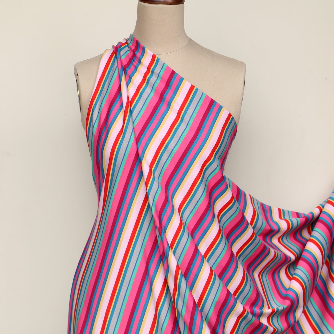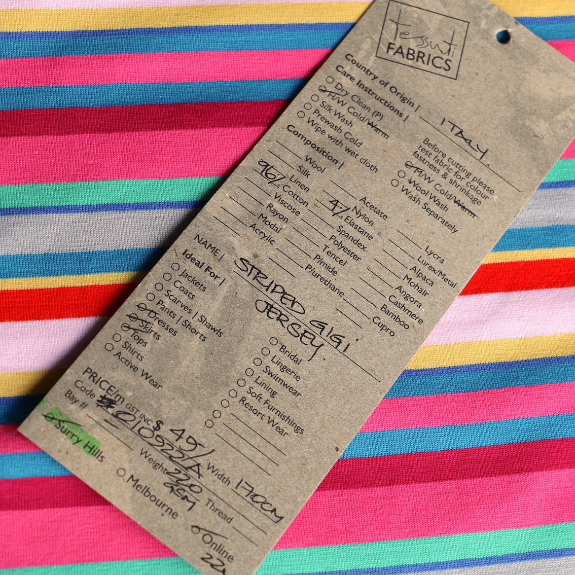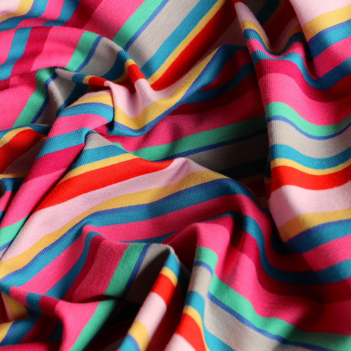 Italian multi grey marle/green/red/white striped 96% cotton 4% elastane jersey knit