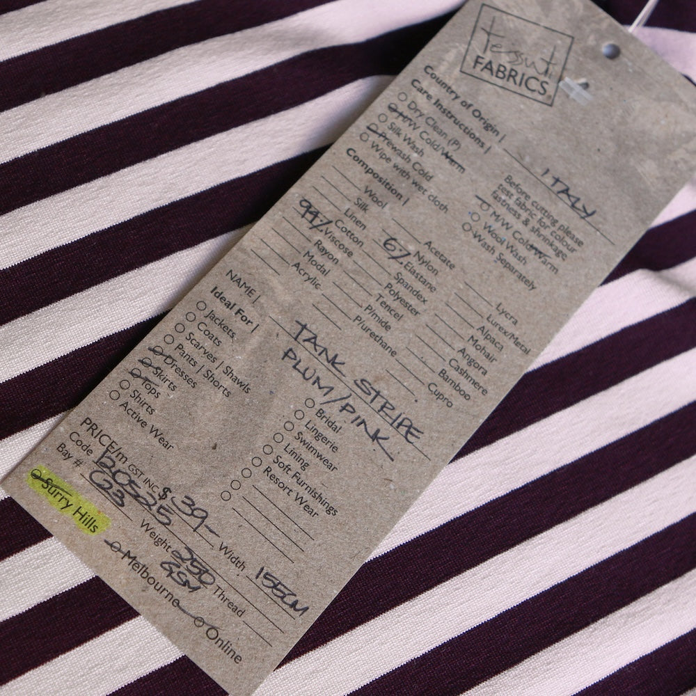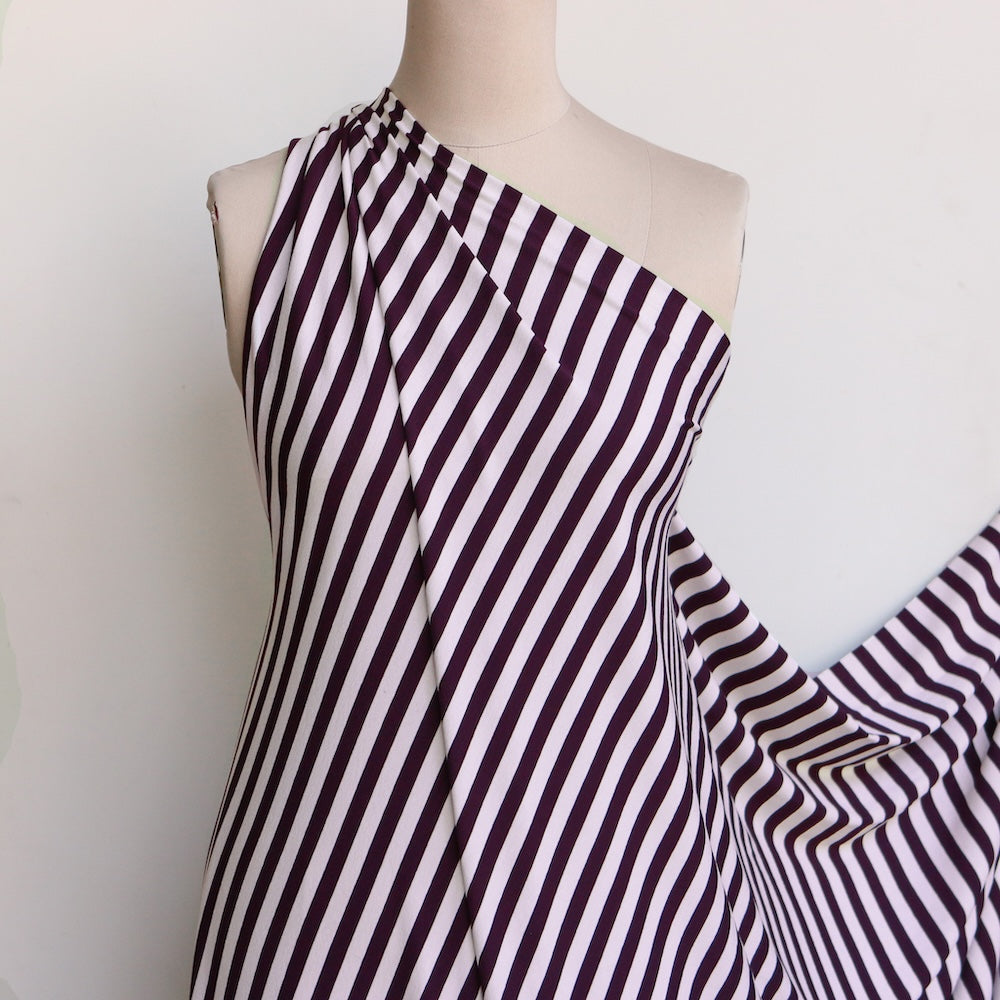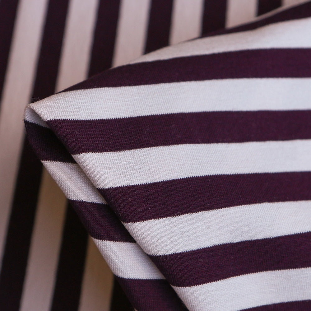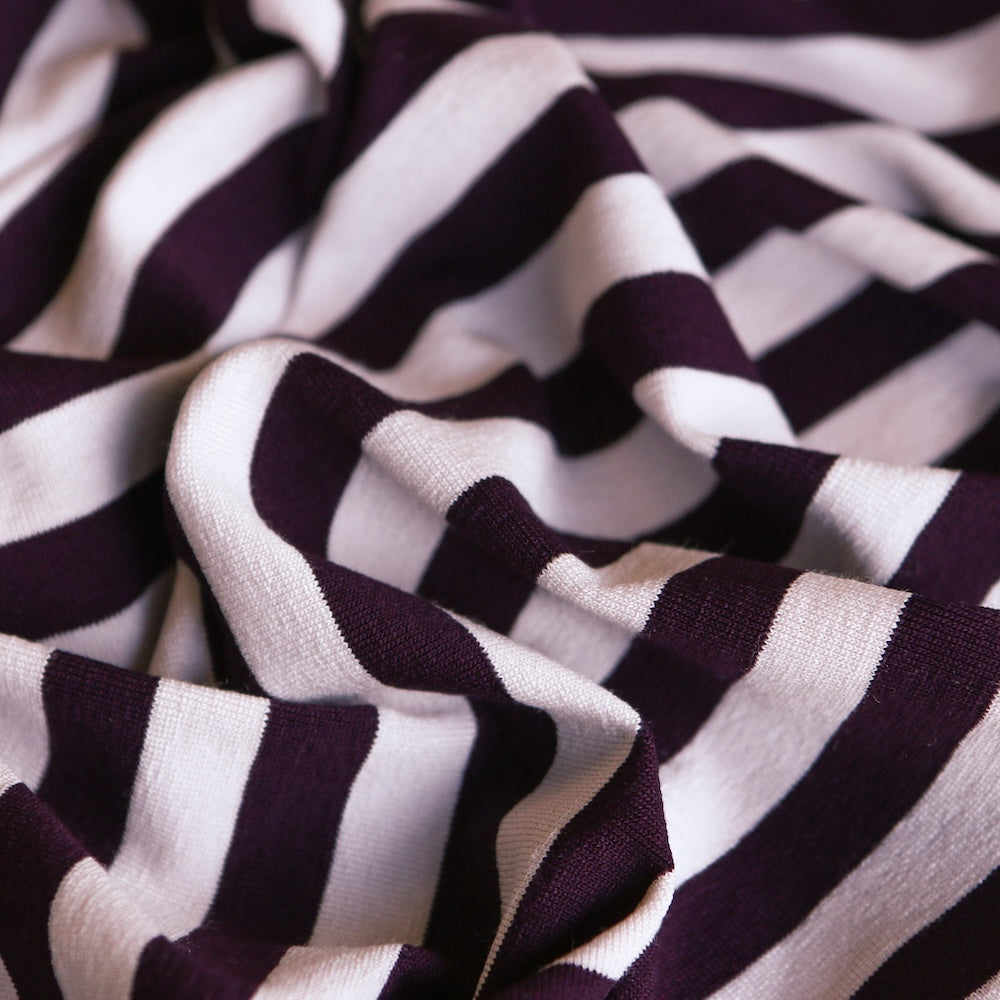 Italian plum/ice pink striped 96% viscose 4% elastane jersey knit
