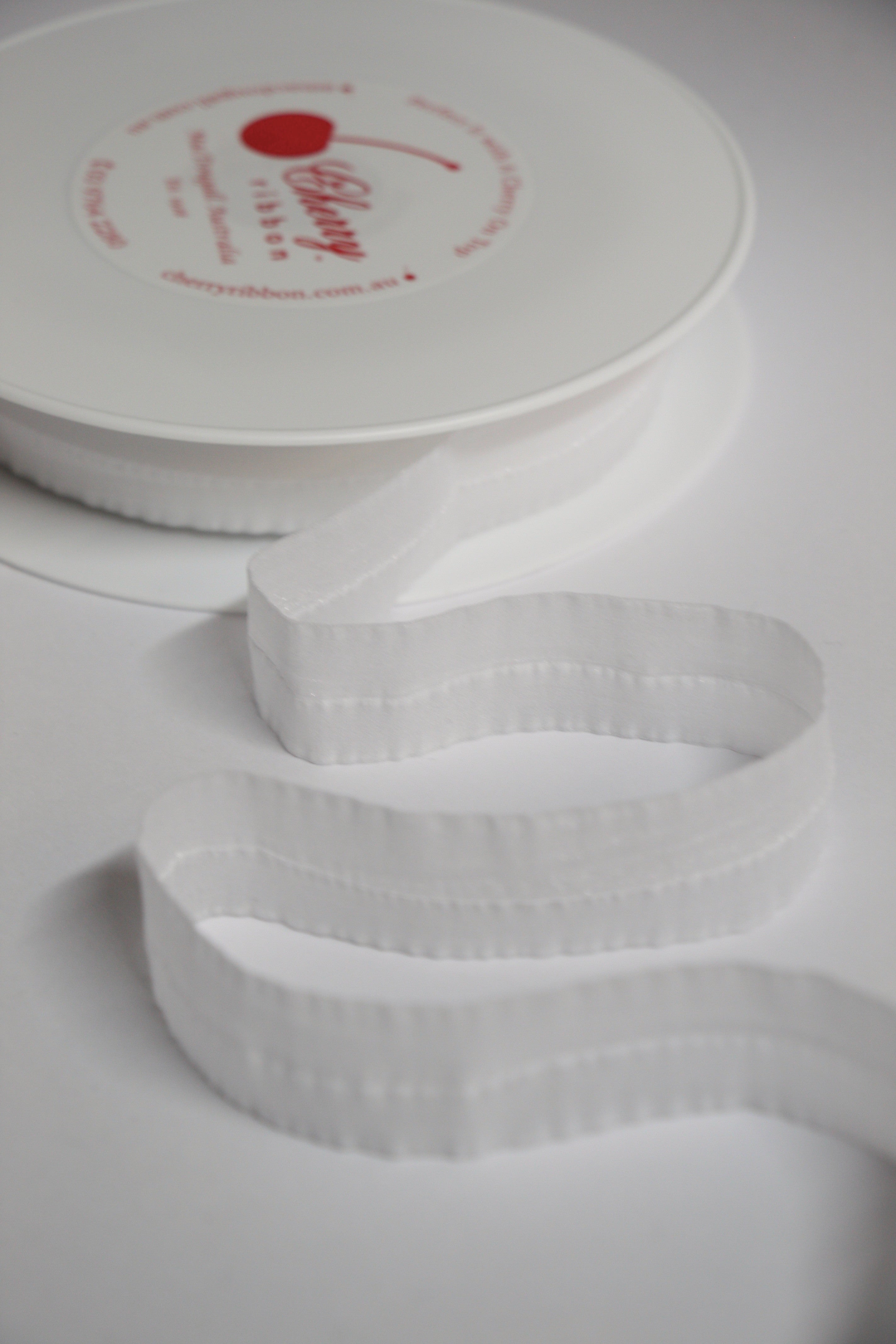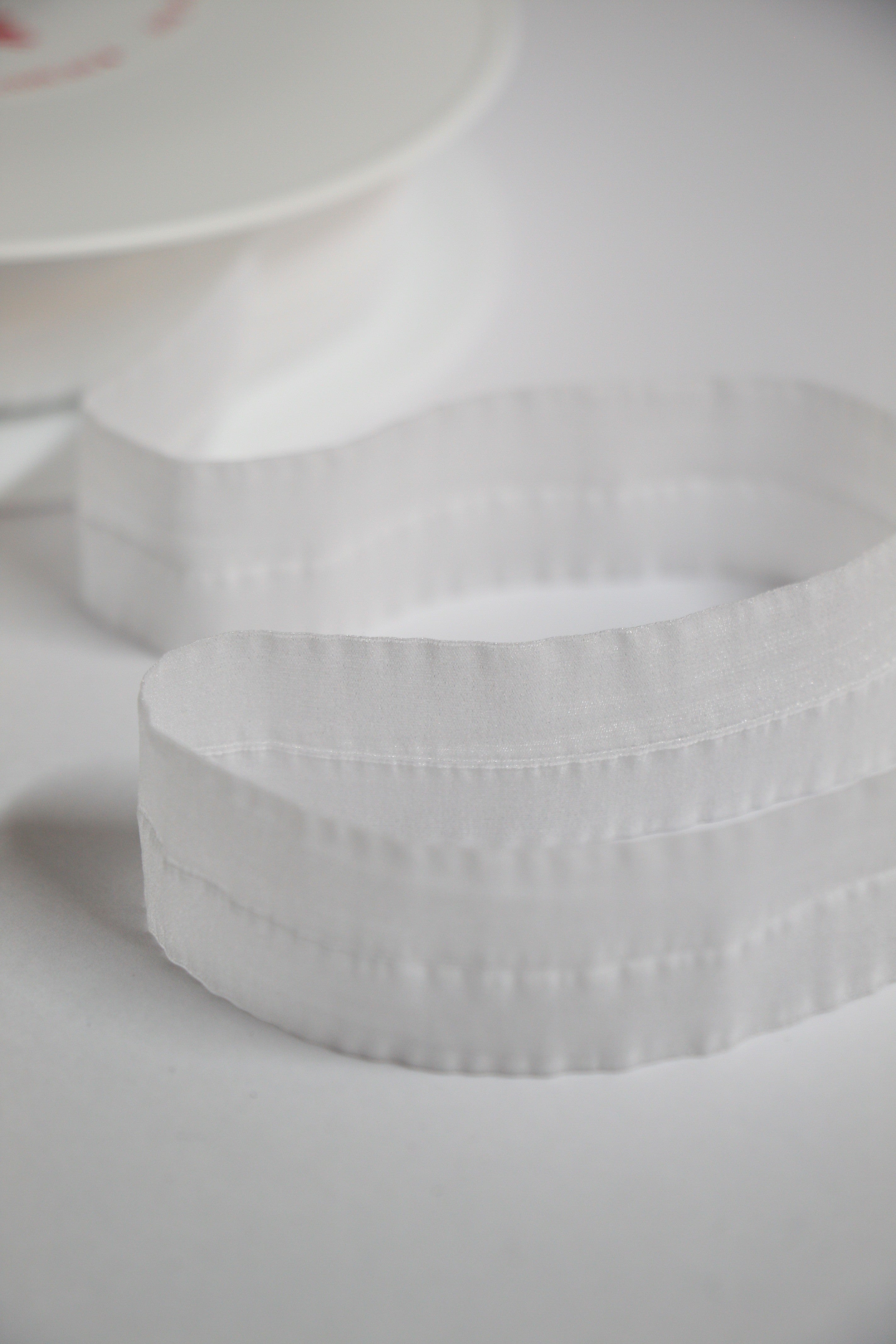 White mouselline (stretch) fold over elastic. Width: 24mm