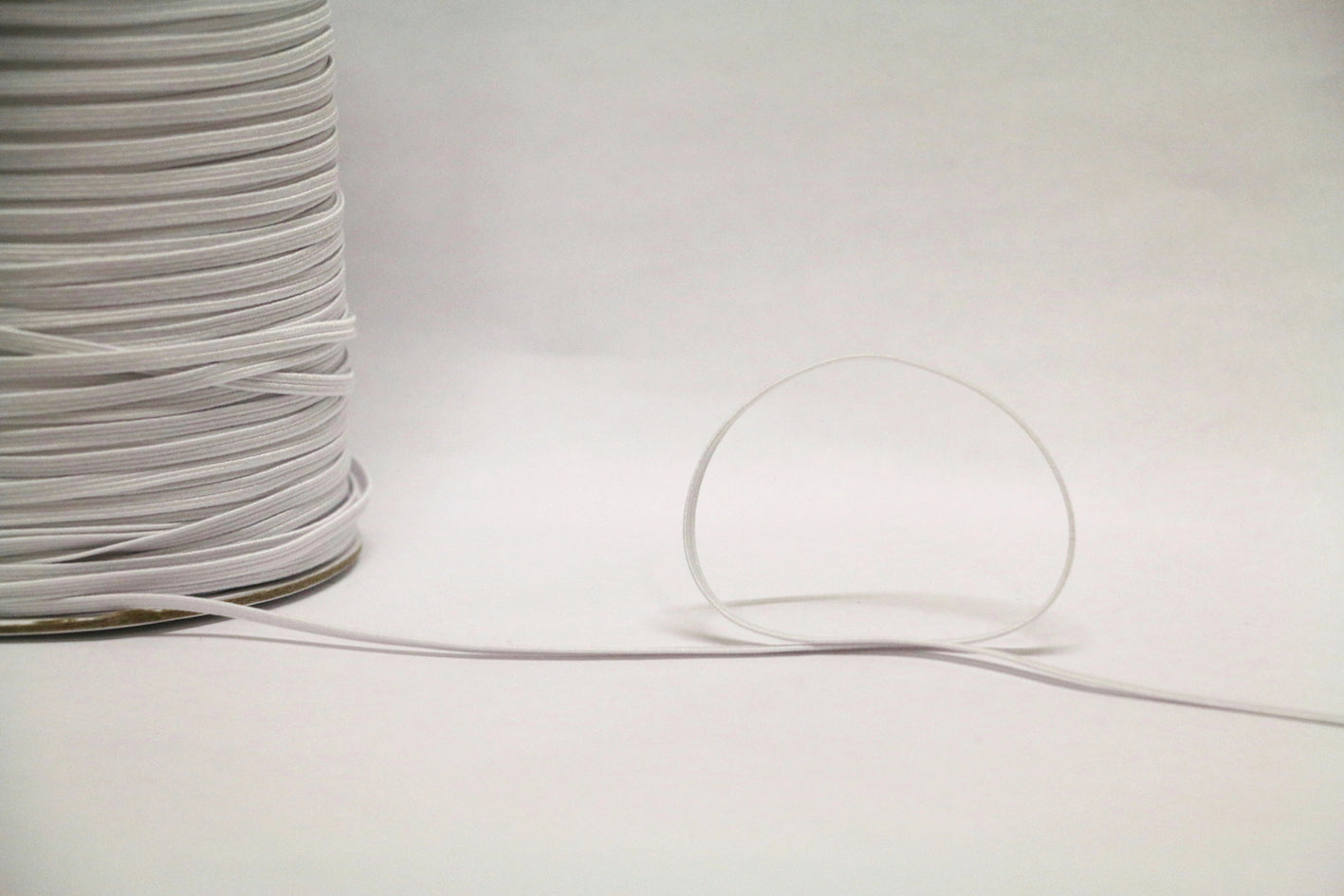 White 100% polyester 3mm wide braided elastic.