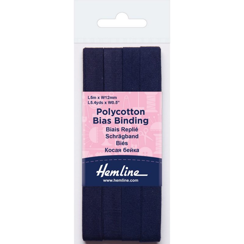 Hemline Polycotton Bias Binding - Navy 12MM X 5M