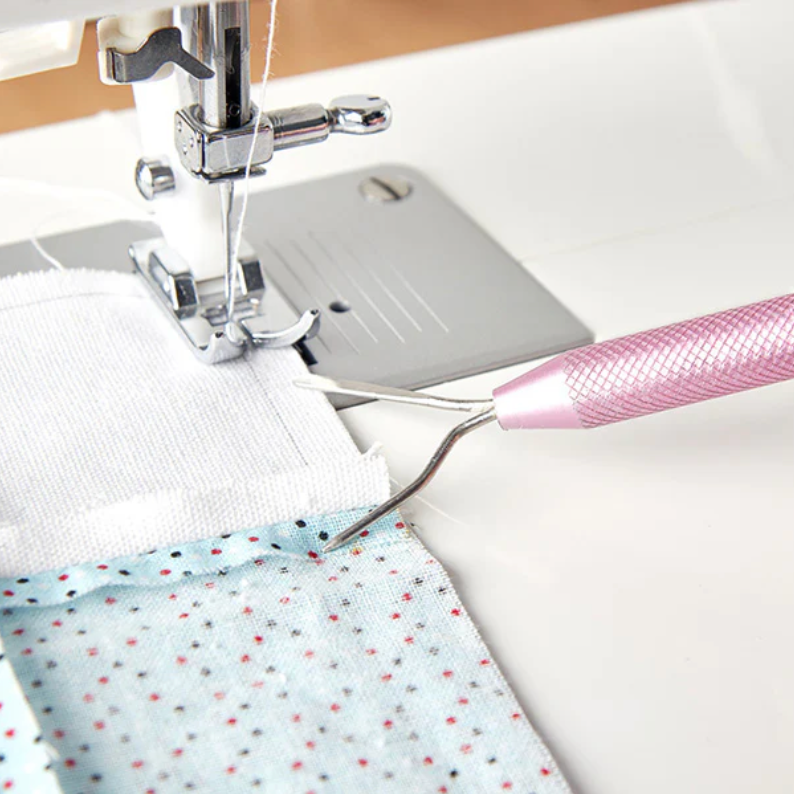 - hold the fabric right up to the presser foot – no need to sew over your pins or your fingers.