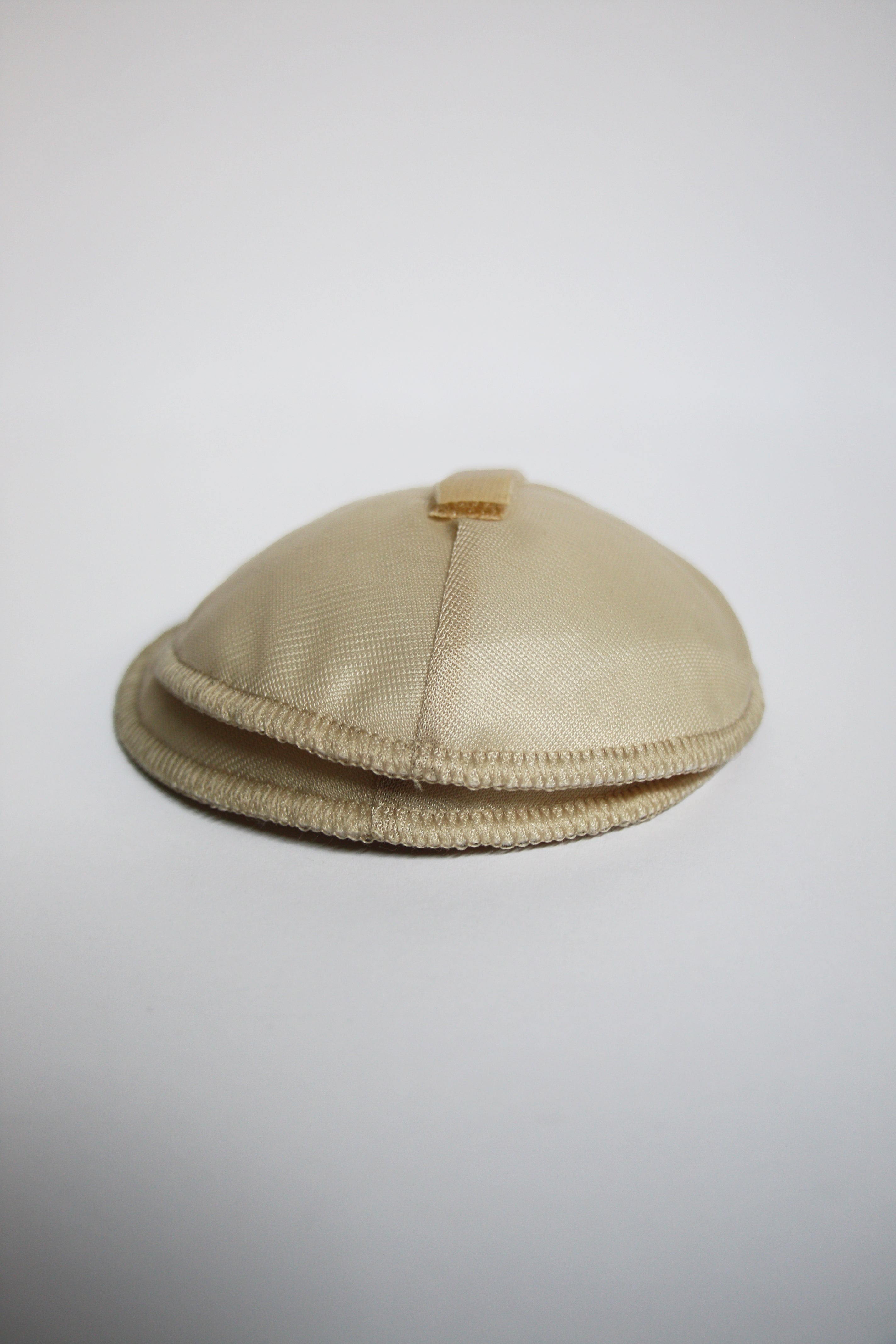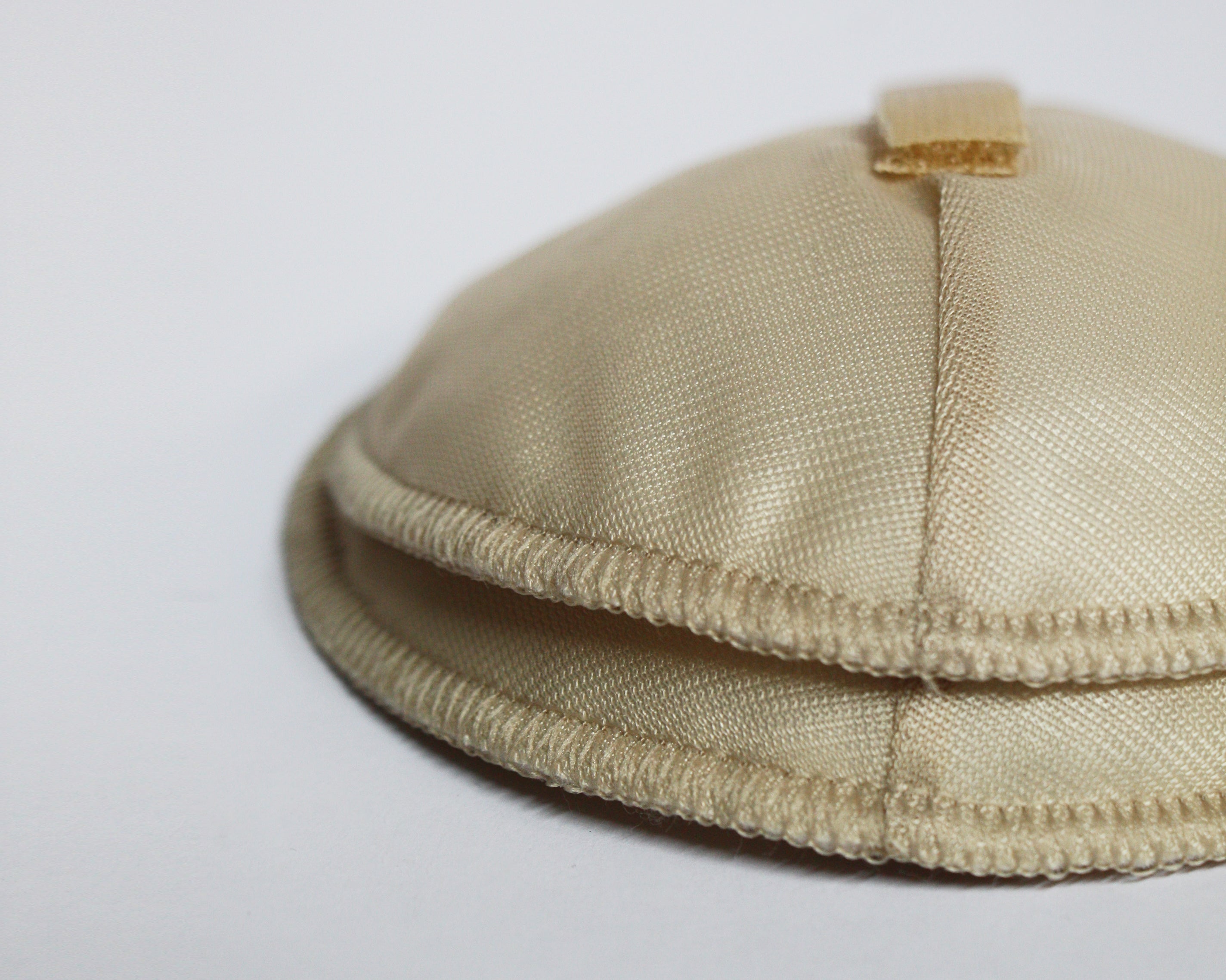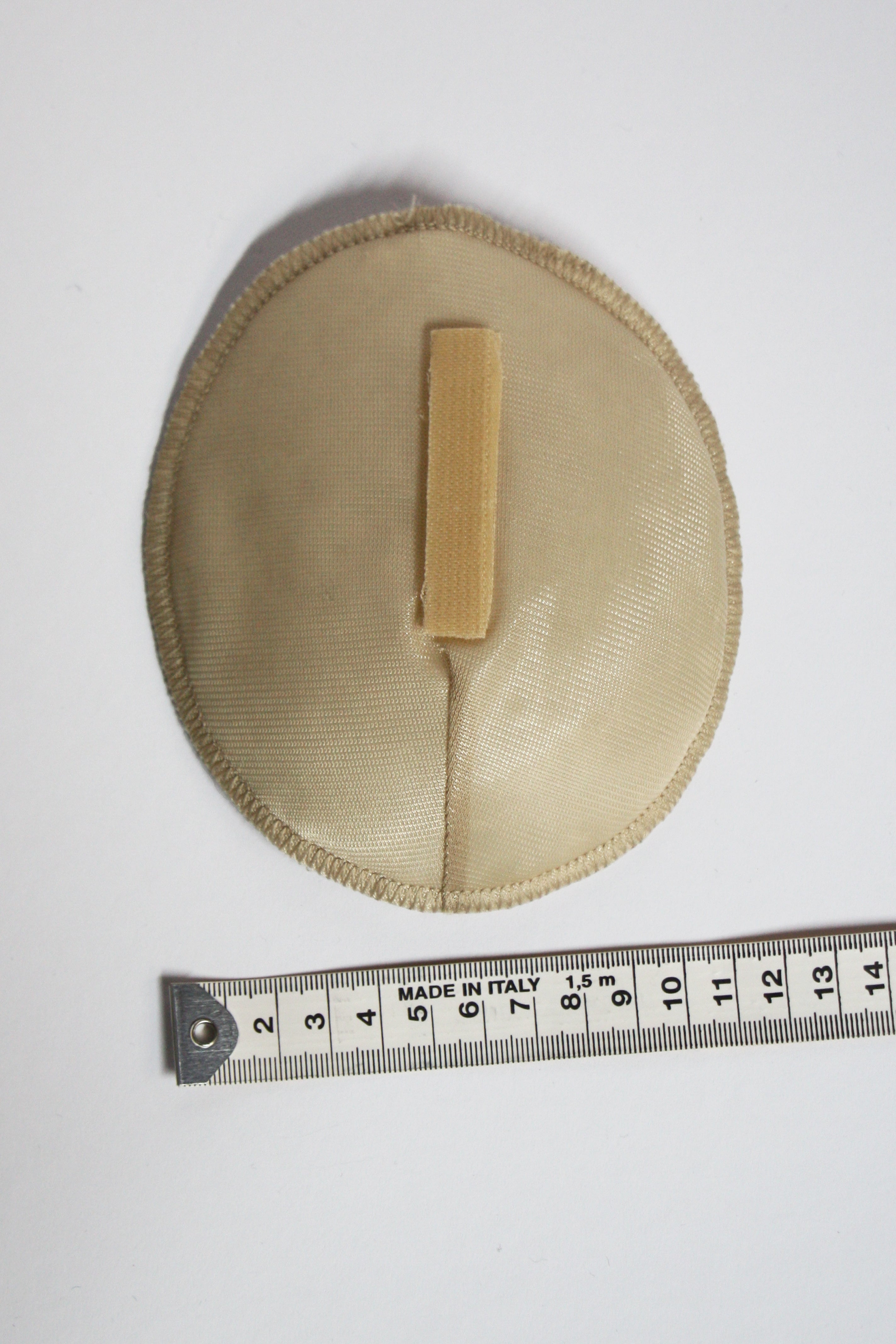 Nude tricot knit covered rounded shoulder pads with velcro strip