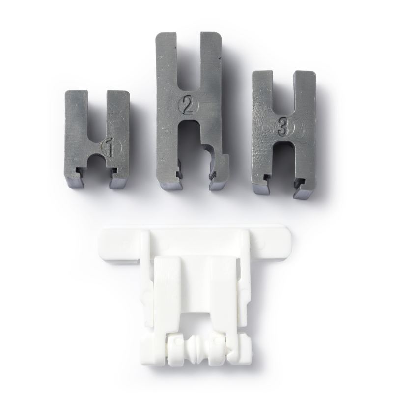 - Special foot made of plastic with 3 different sized adapters for various models and brands