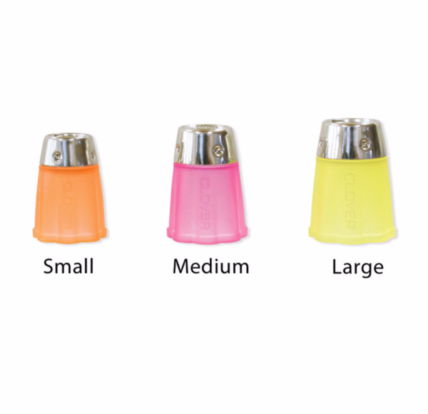 Protect and Grip Thimbles offer the perfect combination of soft, elastic material with the safety of a metal thimble cap. The scallop design offers breathability, keeping your finger cool. Its excellent elasticity helps the thimble form naturally to your fingertip for a light fit. Safe and smart, the ridged and dimpled metal cap holds the needle tip in place and pushes needles in safely. This new thimble provides comfort and lightness.