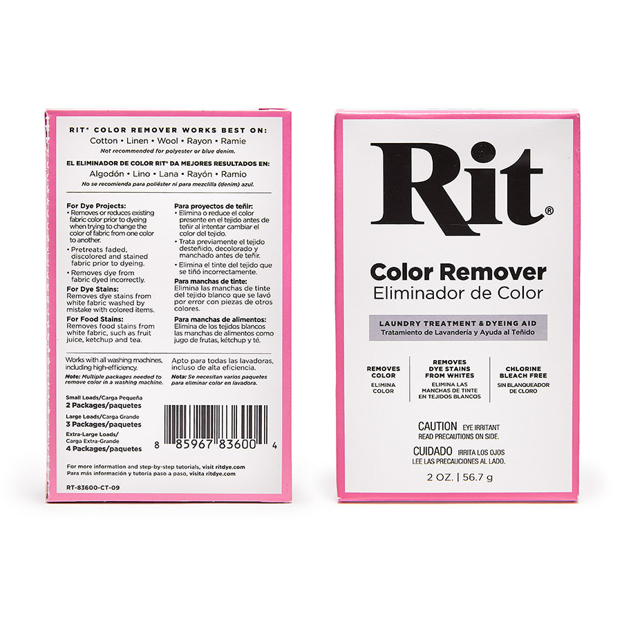 Rit Color Remover is a non-chlorine, reductive type of bleach that will not damage or deteriorate washable fabrics as chlorine bleach will. It is used primarily to remove or reduce color from fabric prior to dyeing, creating a blank canvas for dyeing to a true color. It works on cotton, linen, silk, wool, ramie and rayon. It may have a limited effect on polyester, depending upon how it was dyed commercially.