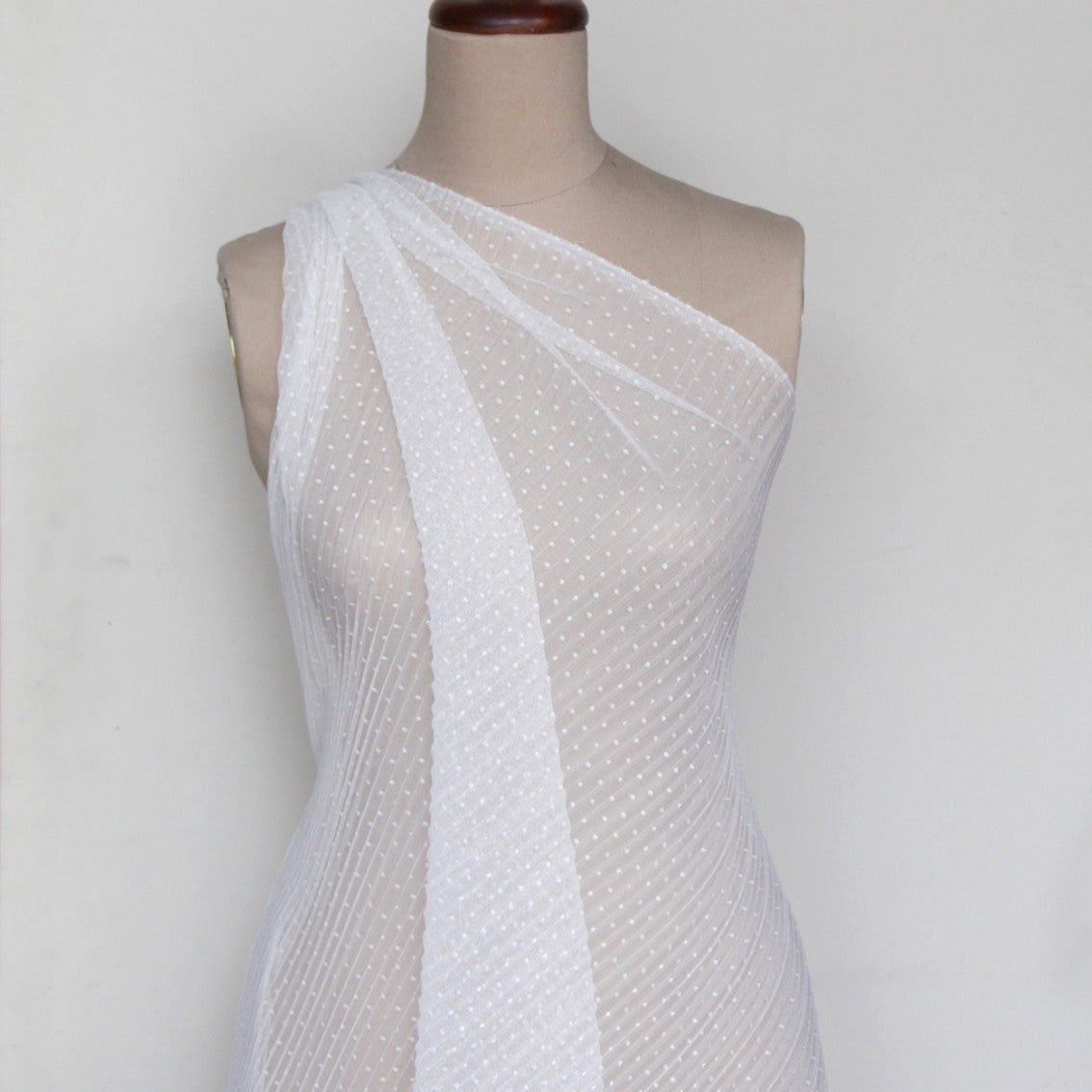 Designer end ivory spotted pleated 100% polyester tulle. Width: 145cm