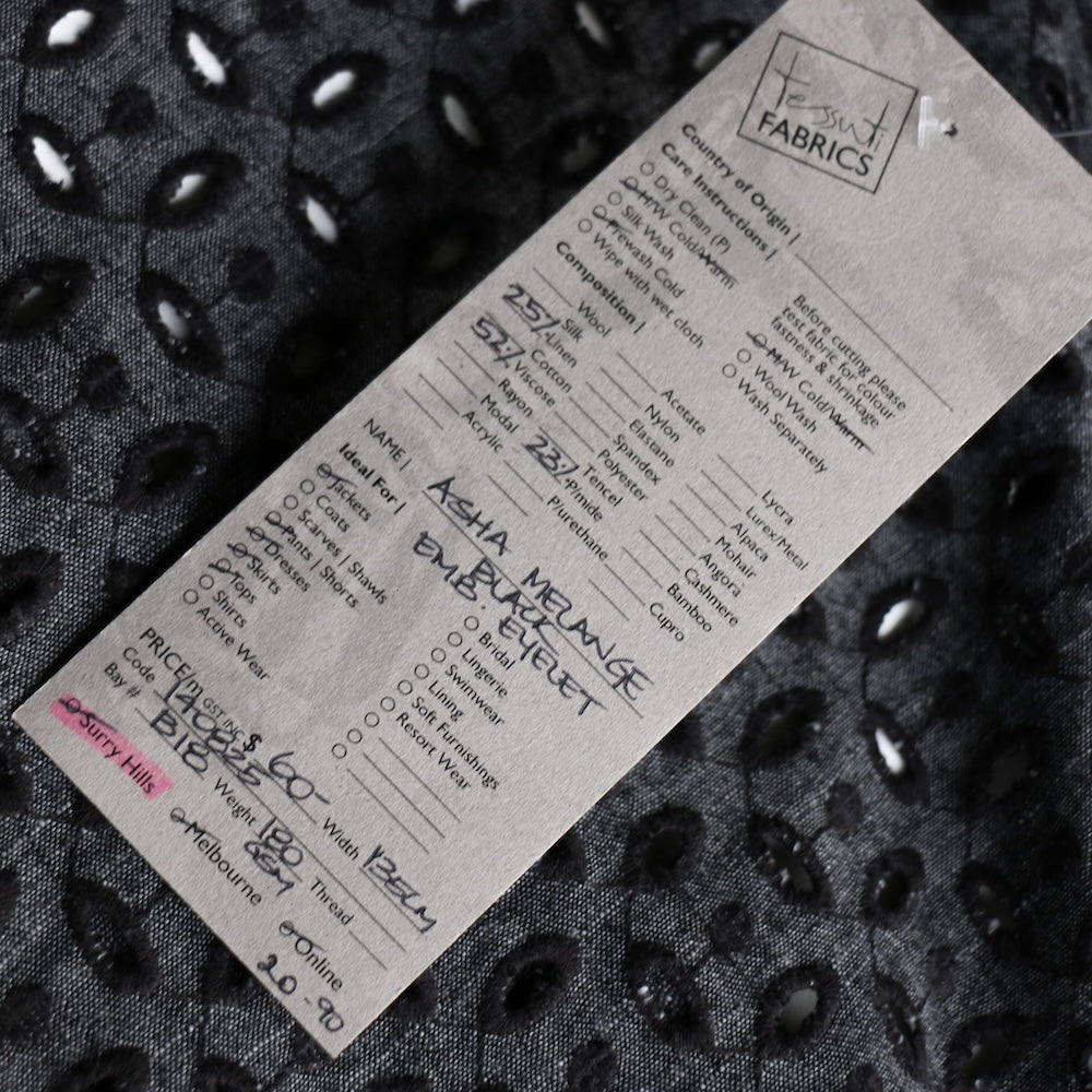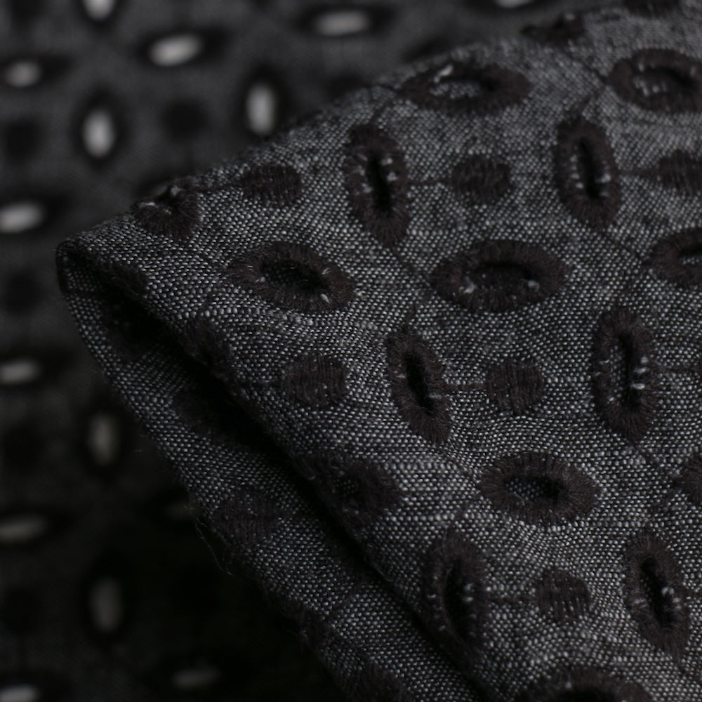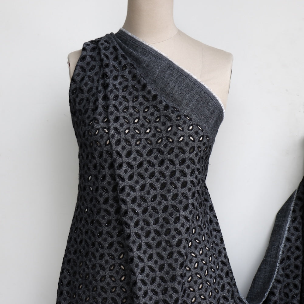 Black melange embroidered eyelet 52% viscose 25% linen 23% polyester