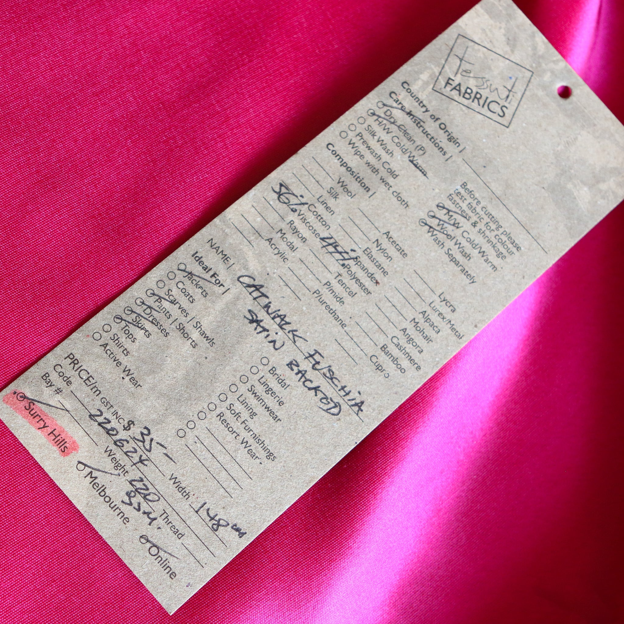 Fuchsia pink 56% viscose 44% polyester satin