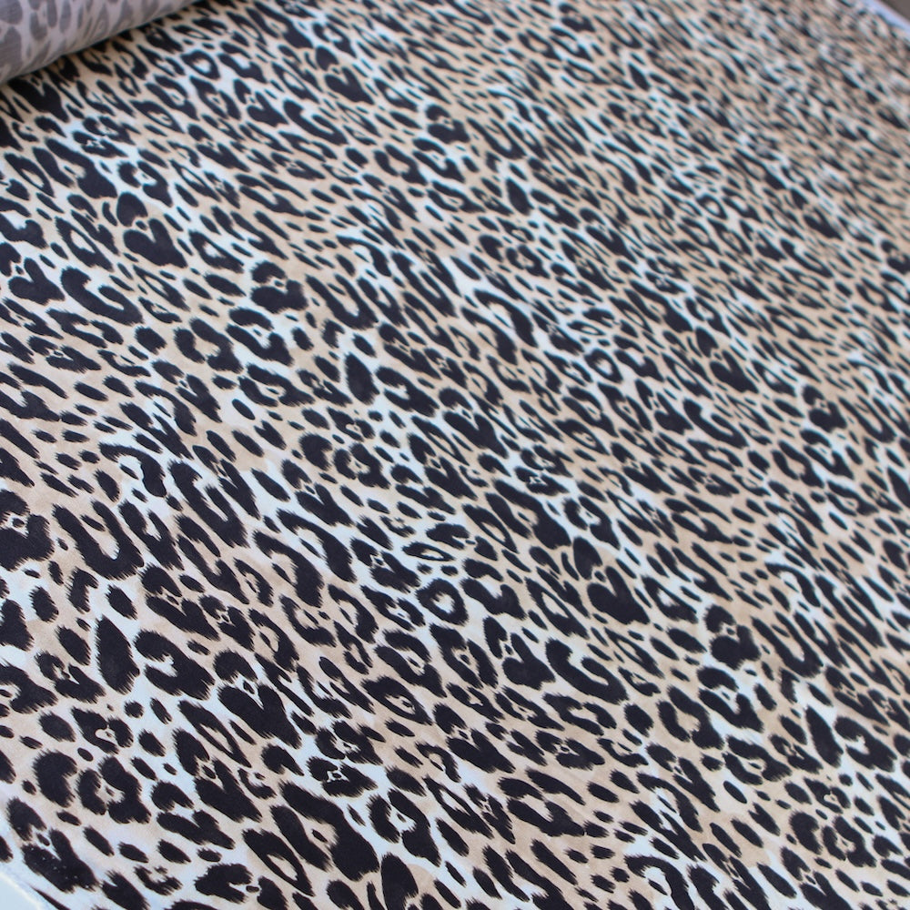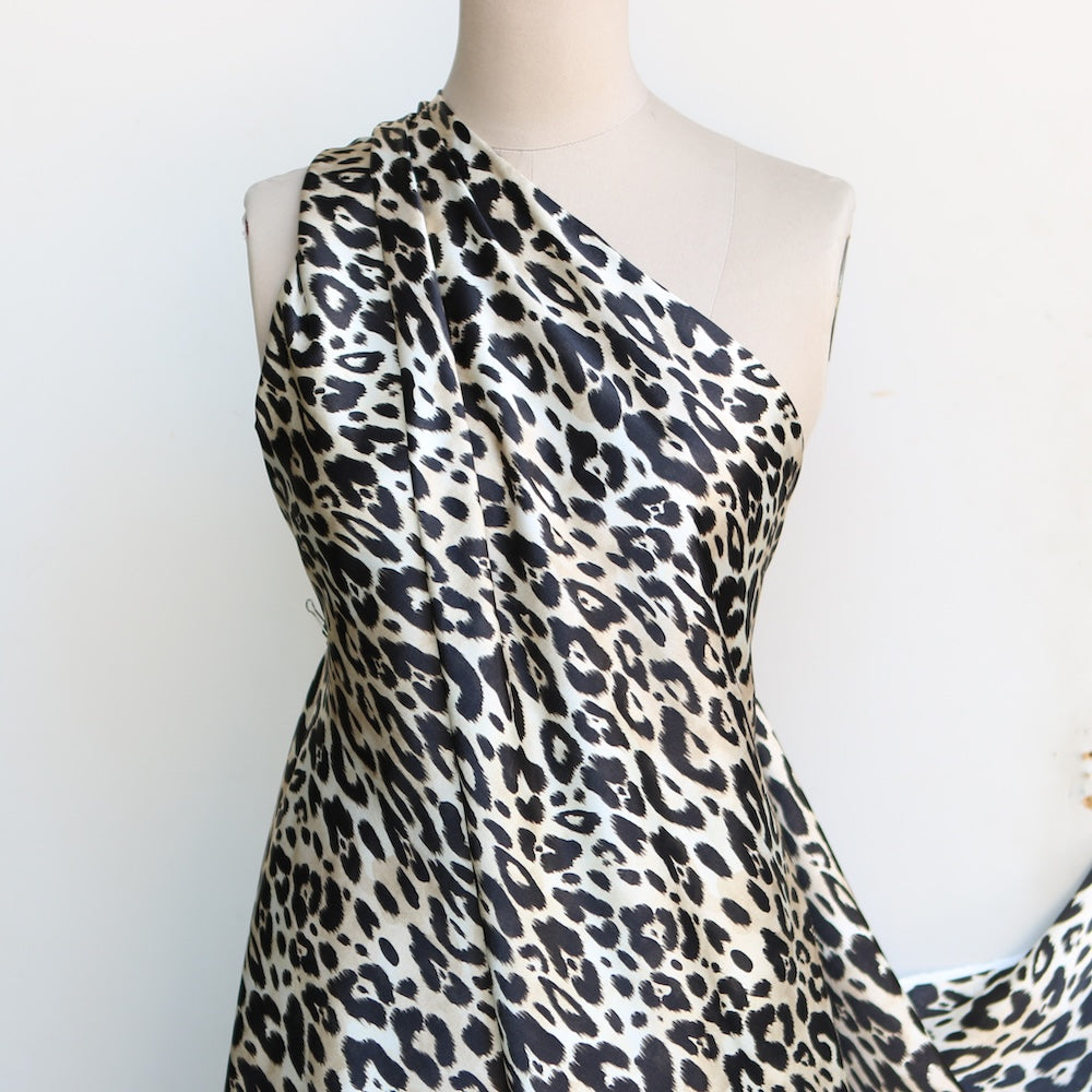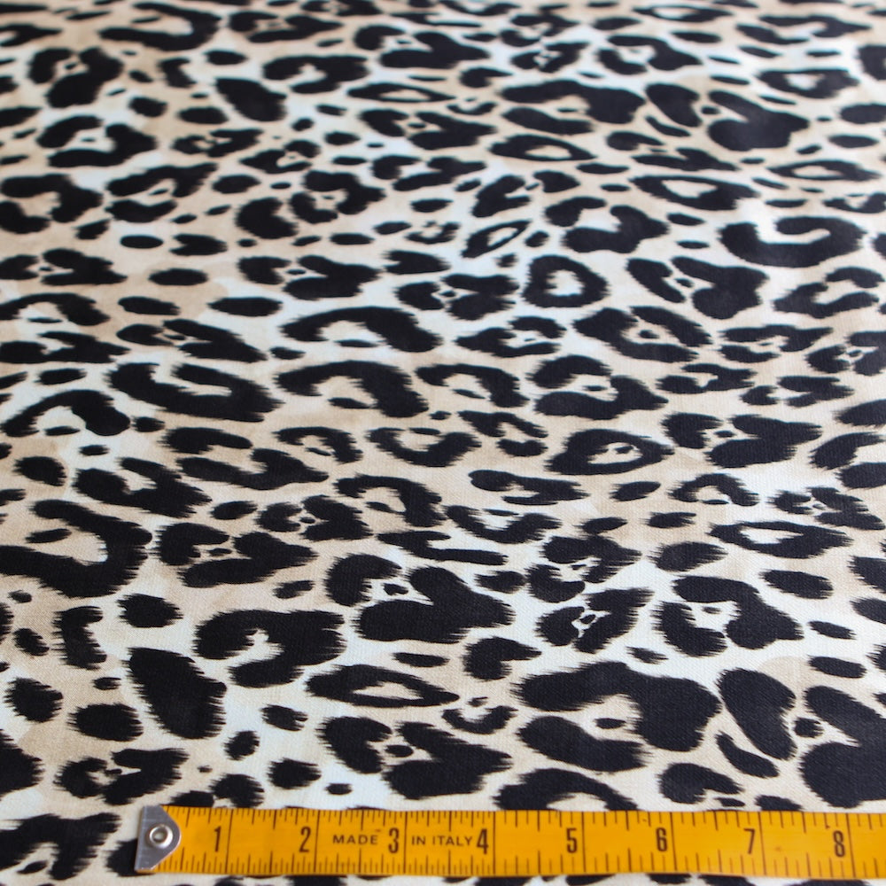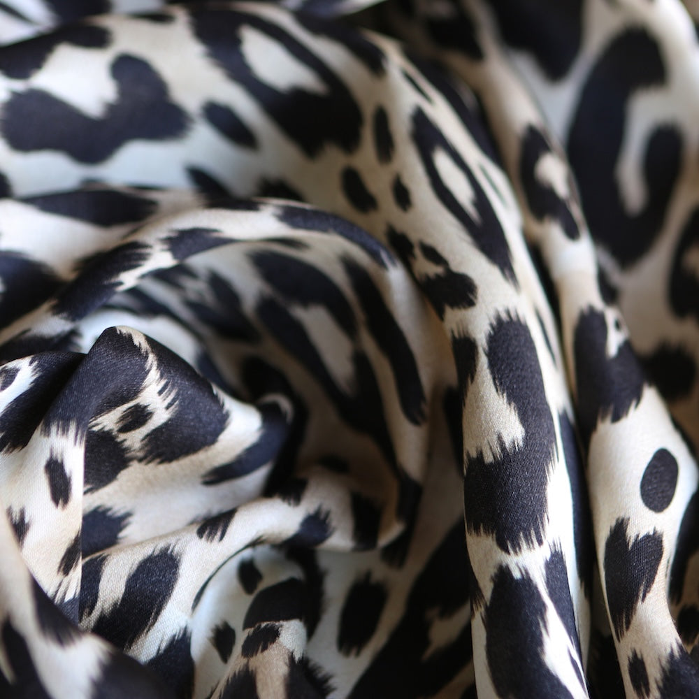 Italian black/camel animal spot printed 100% viscose satin