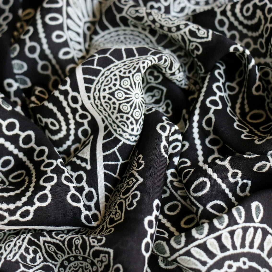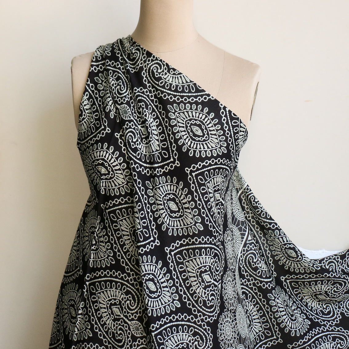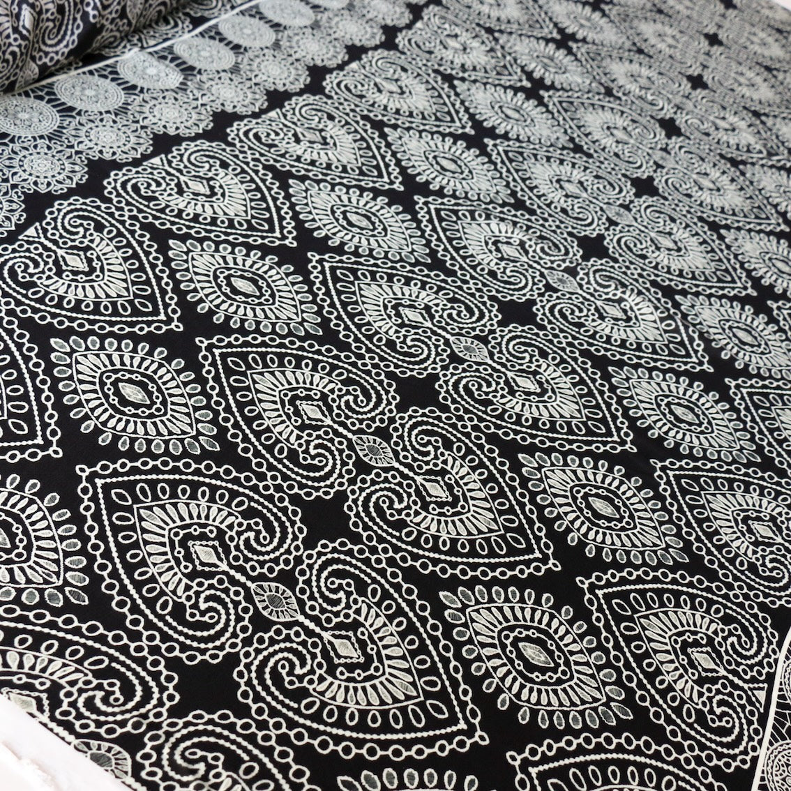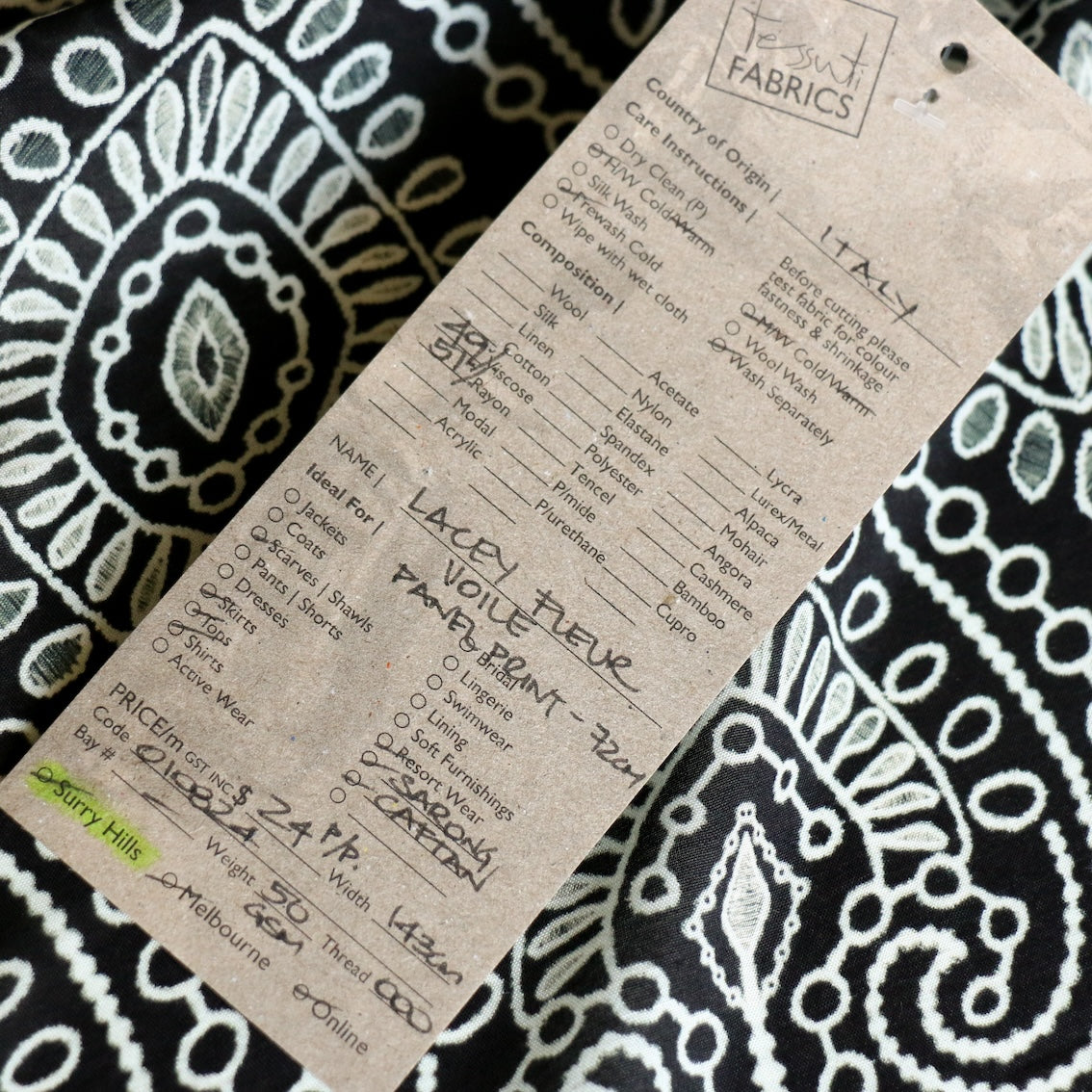 Italian black/cream 'embroidered eyelet lace look' printed 100% viscose panel print