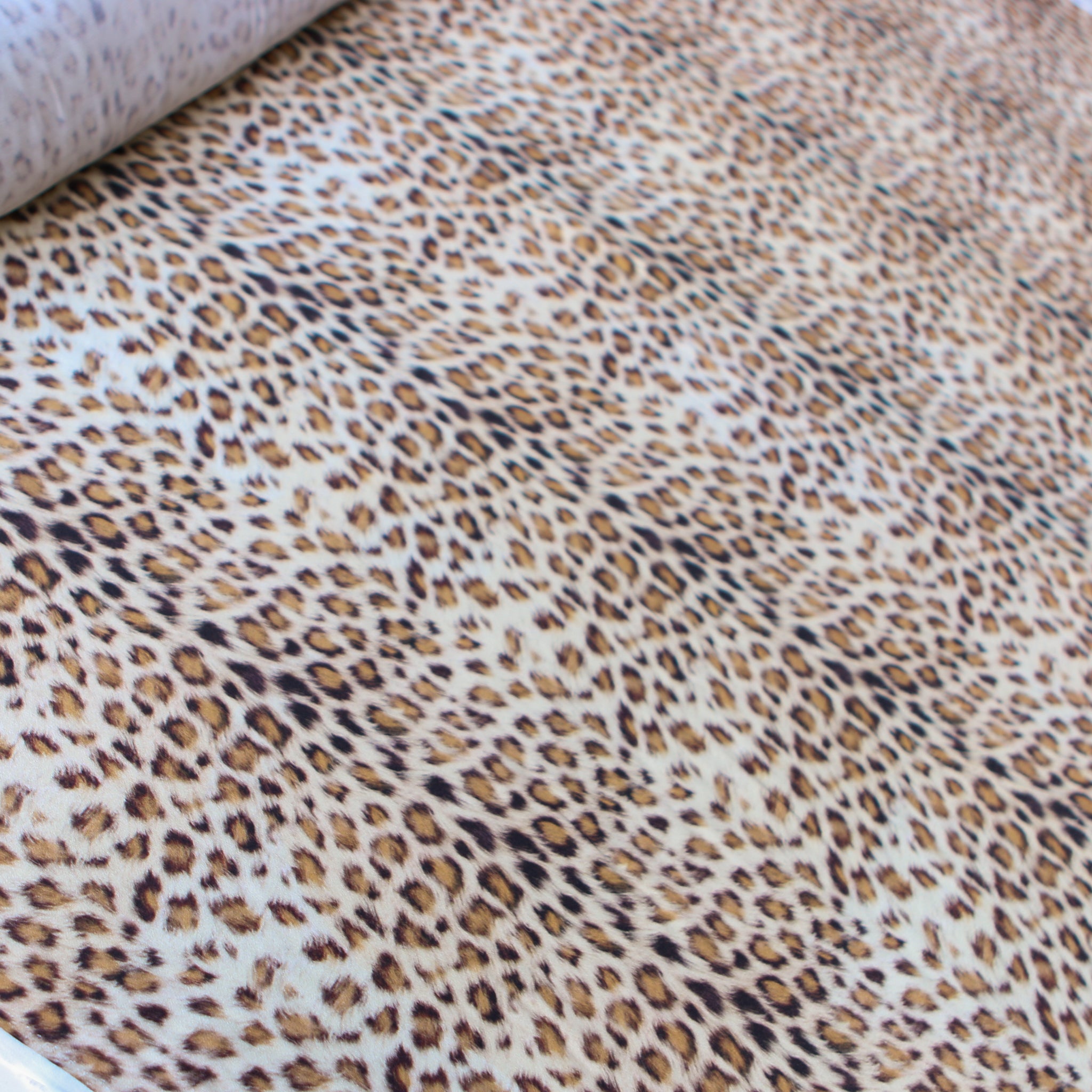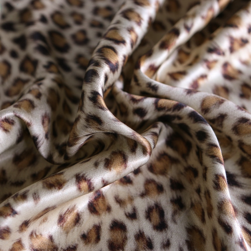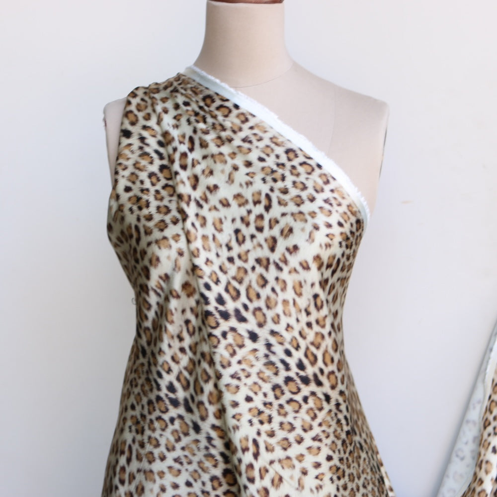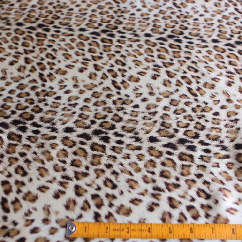 Italian camel/brown animal spot printed 100% viscose satin