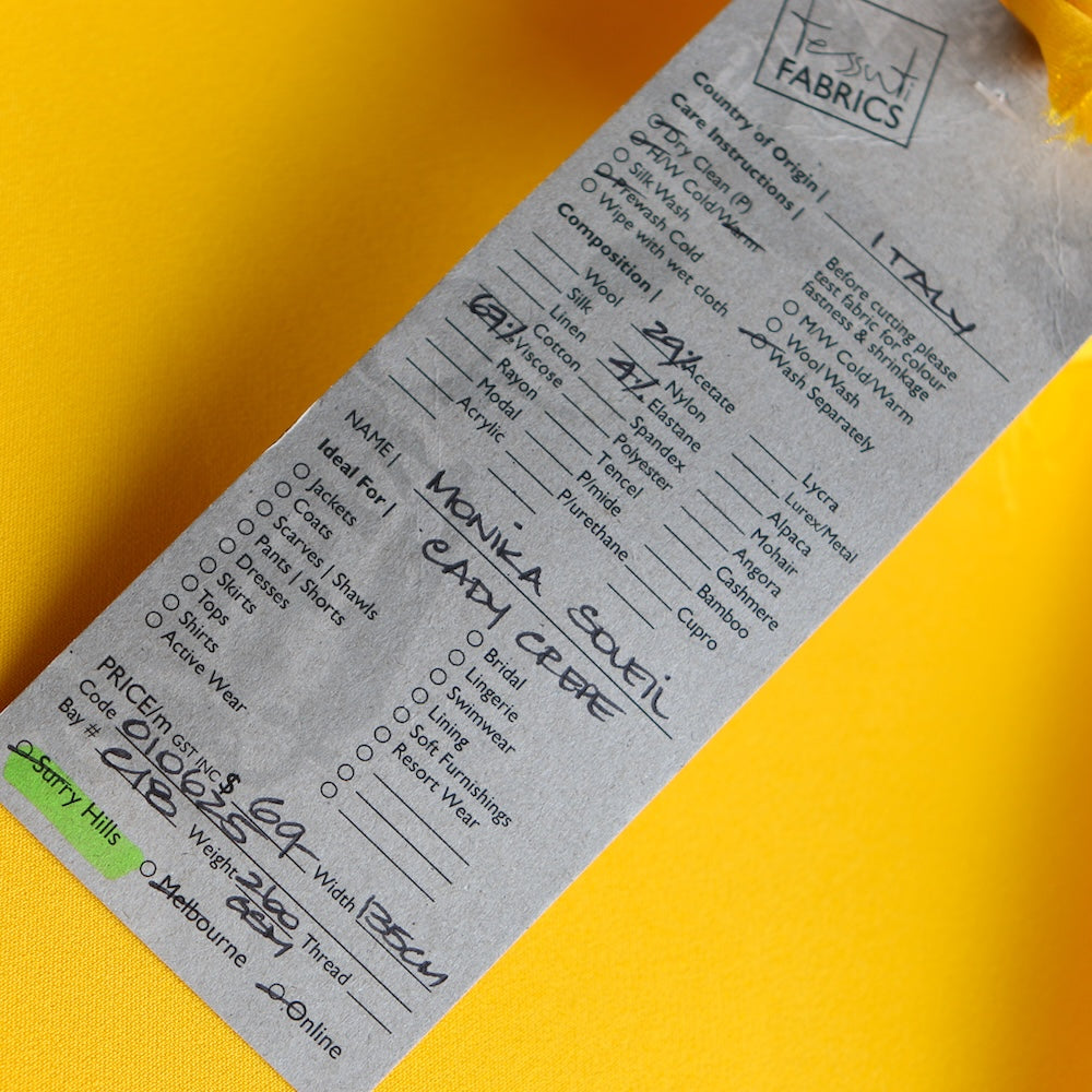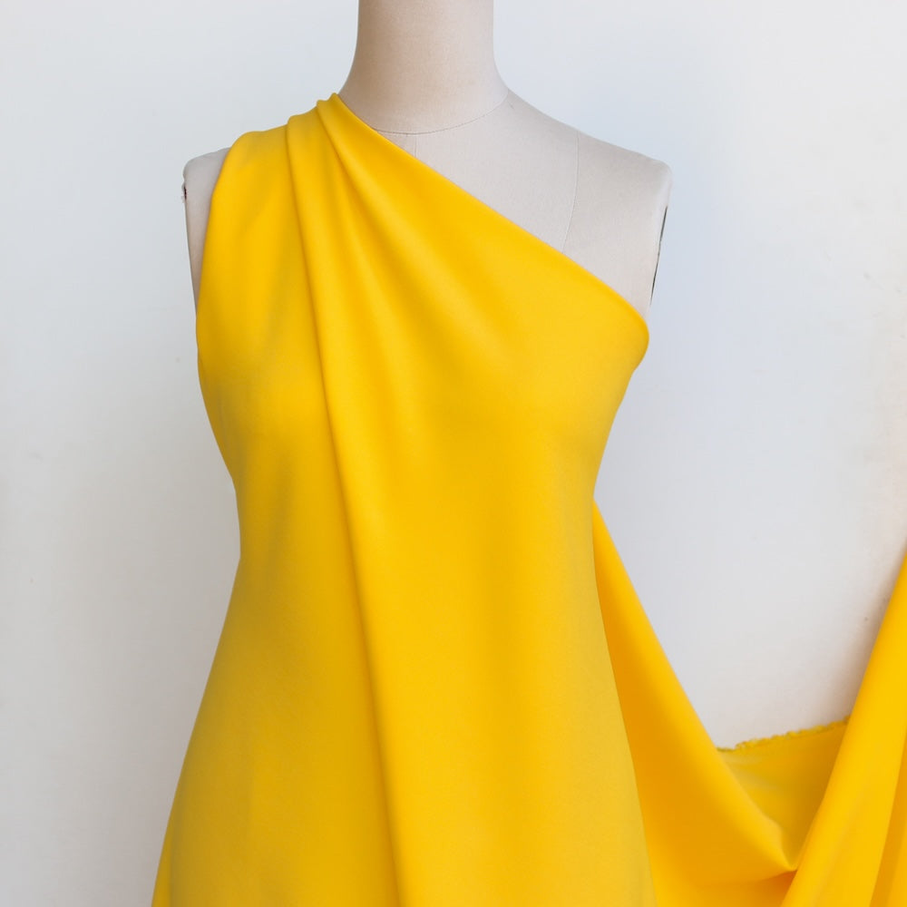 Italian bright yellow 67% viscose 29% acetate 4% elastane stretch cady crepe