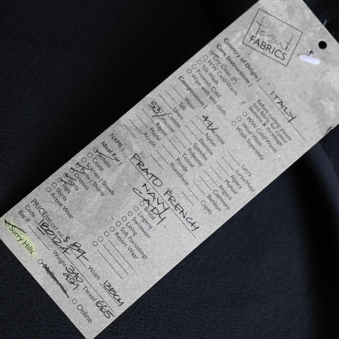Navy Italian 53% viscose 47% acetate satin backed cady