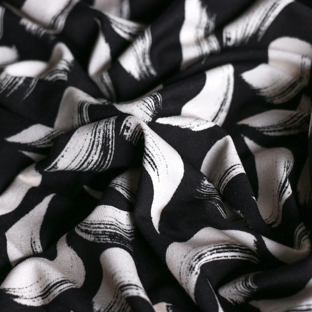 Italian black/off-white printed 94% viscose 6% elastane jersey knit