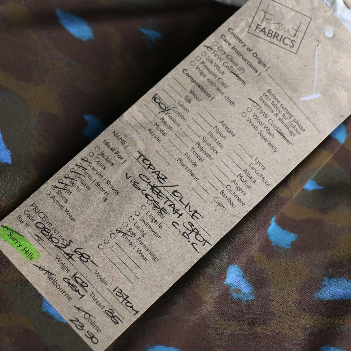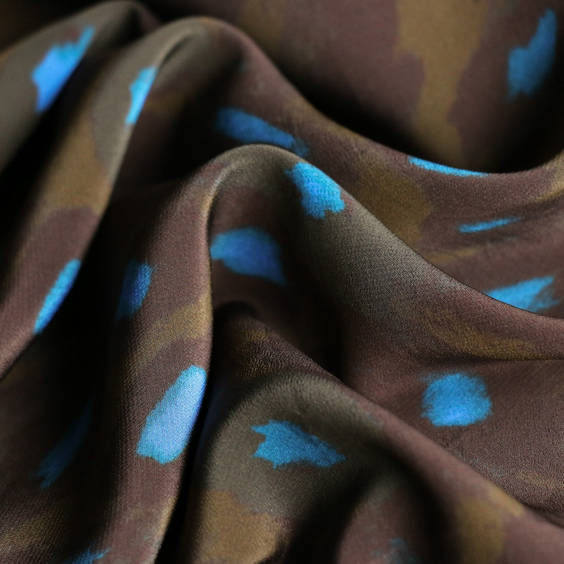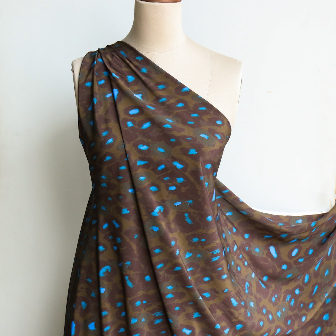 Topaz/olive leopard spot printed 100% viscose crepe de chine