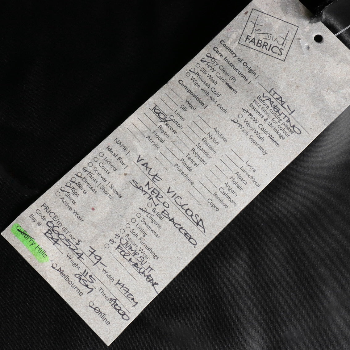Vale Viscosa Nero Satin Backed
