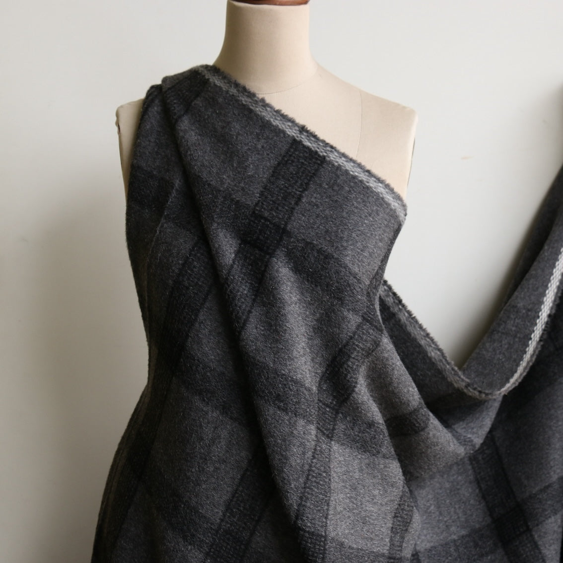 Italian charcoal/black check 55% wool 45% alpaca 5% polyamide coating