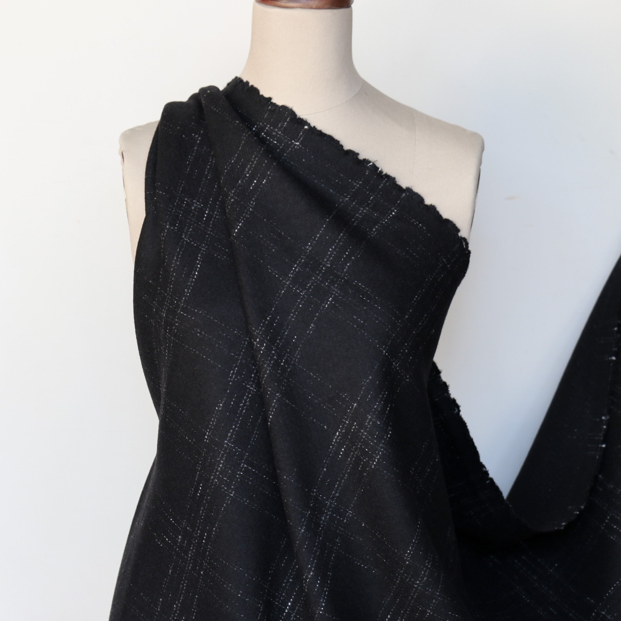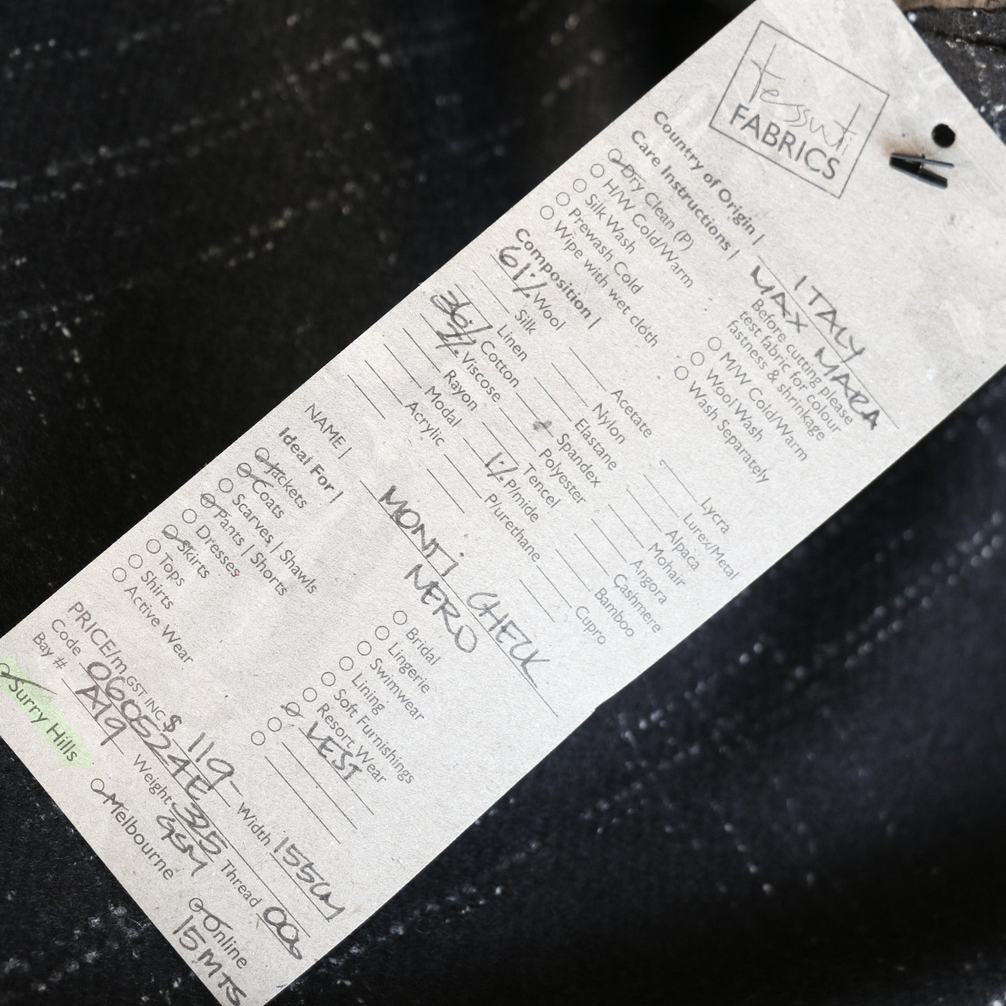 Italian black/white fleck checked 61% wool 36% cotton 2% viscose 1% polyamide coating