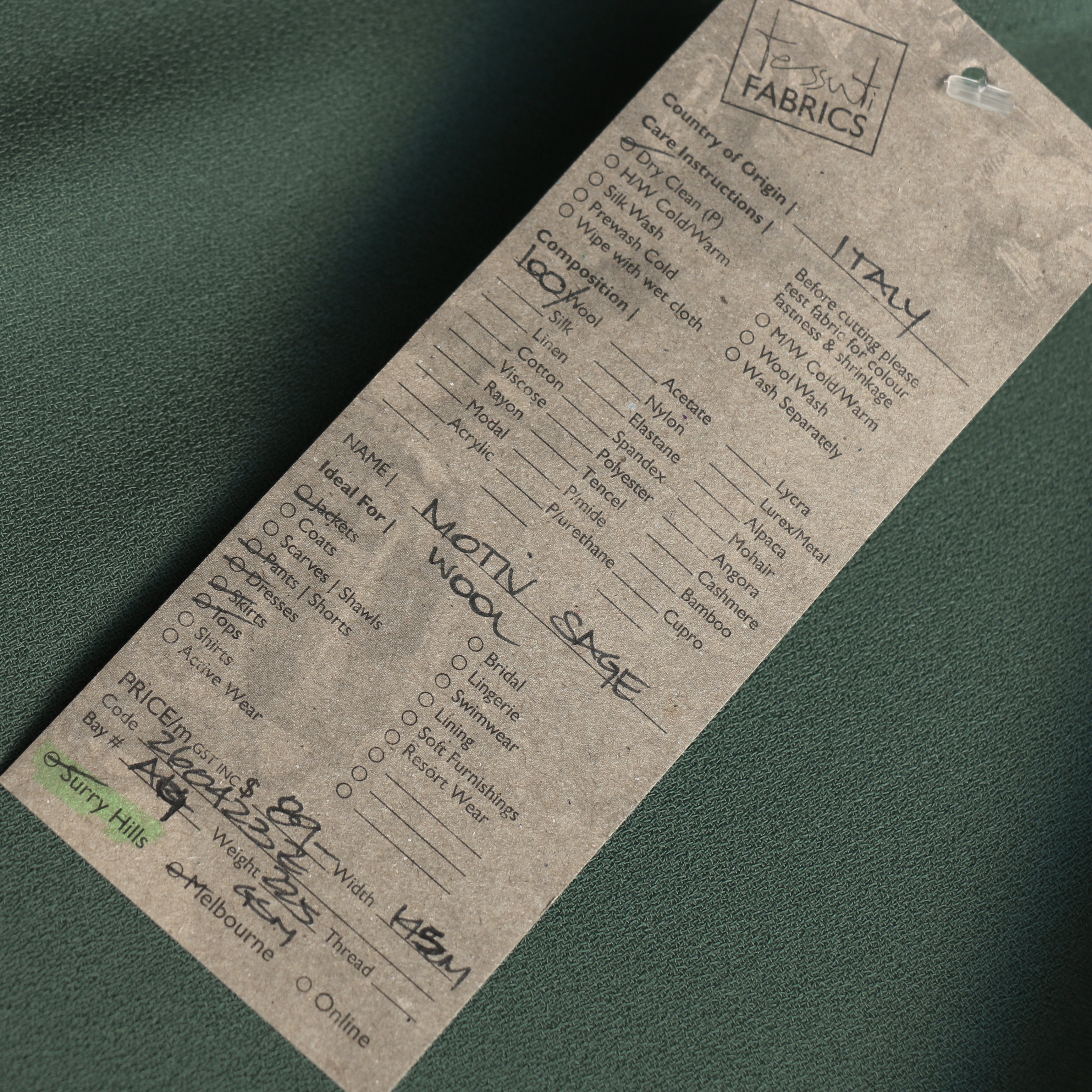 Italian sage 100% wool crepe