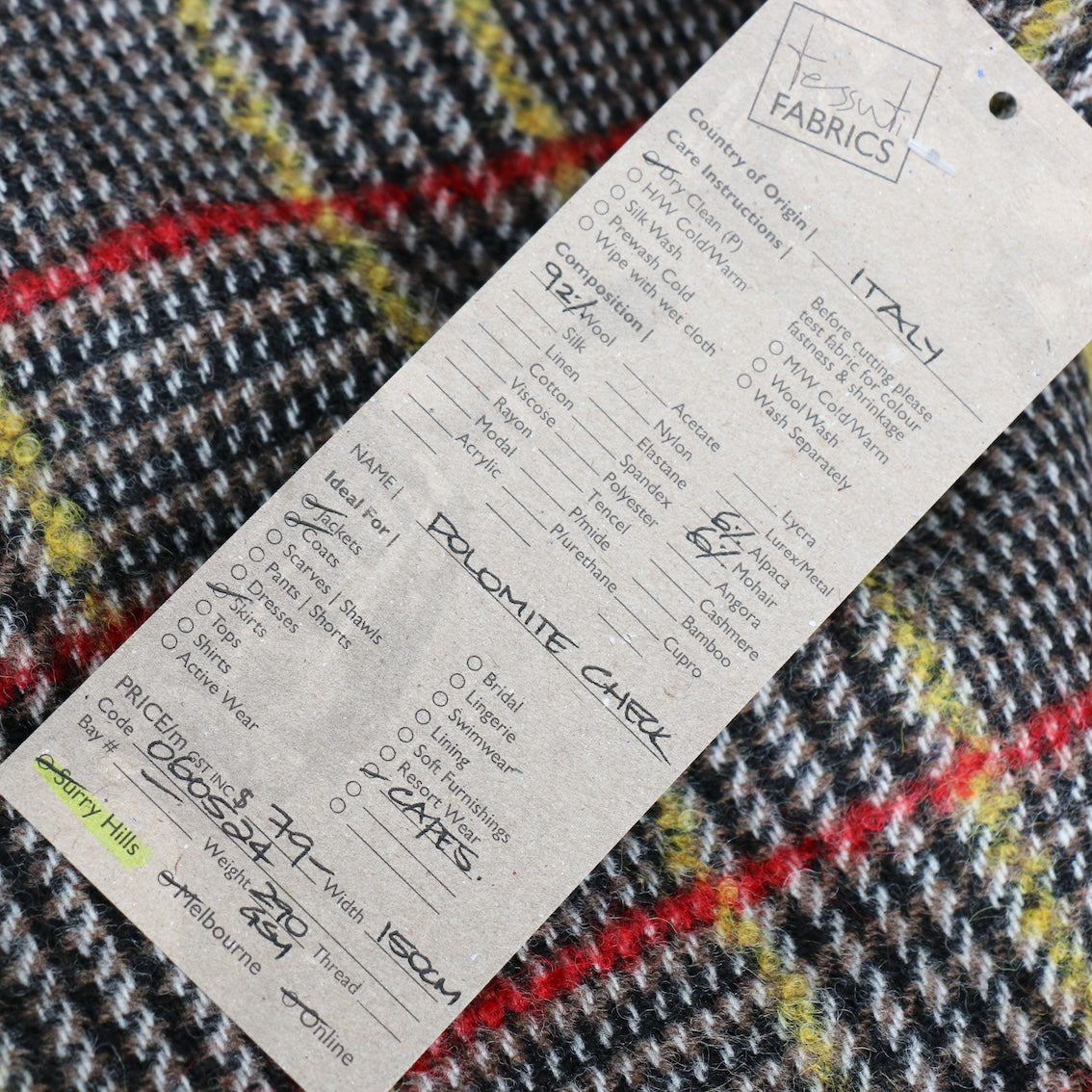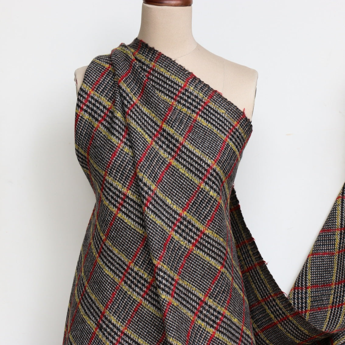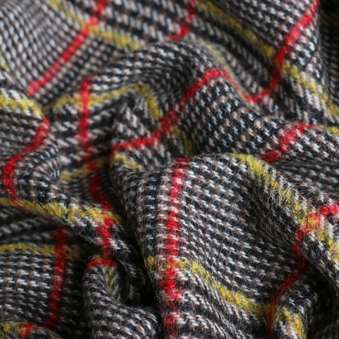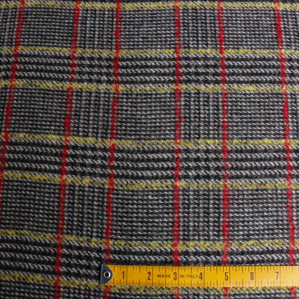 Italian black/walnut/yellow/red checked 92% wool 6% alpaca 6% mohair