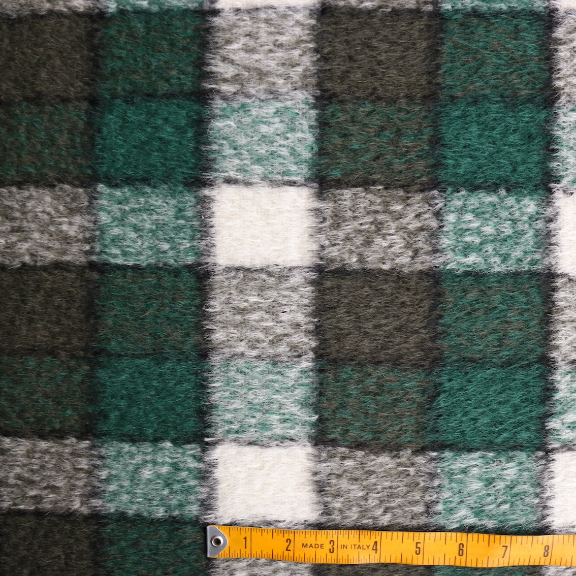 Italian green/olive/winter white checked 55% wool 40% alpaca 5% polyamide plush coating