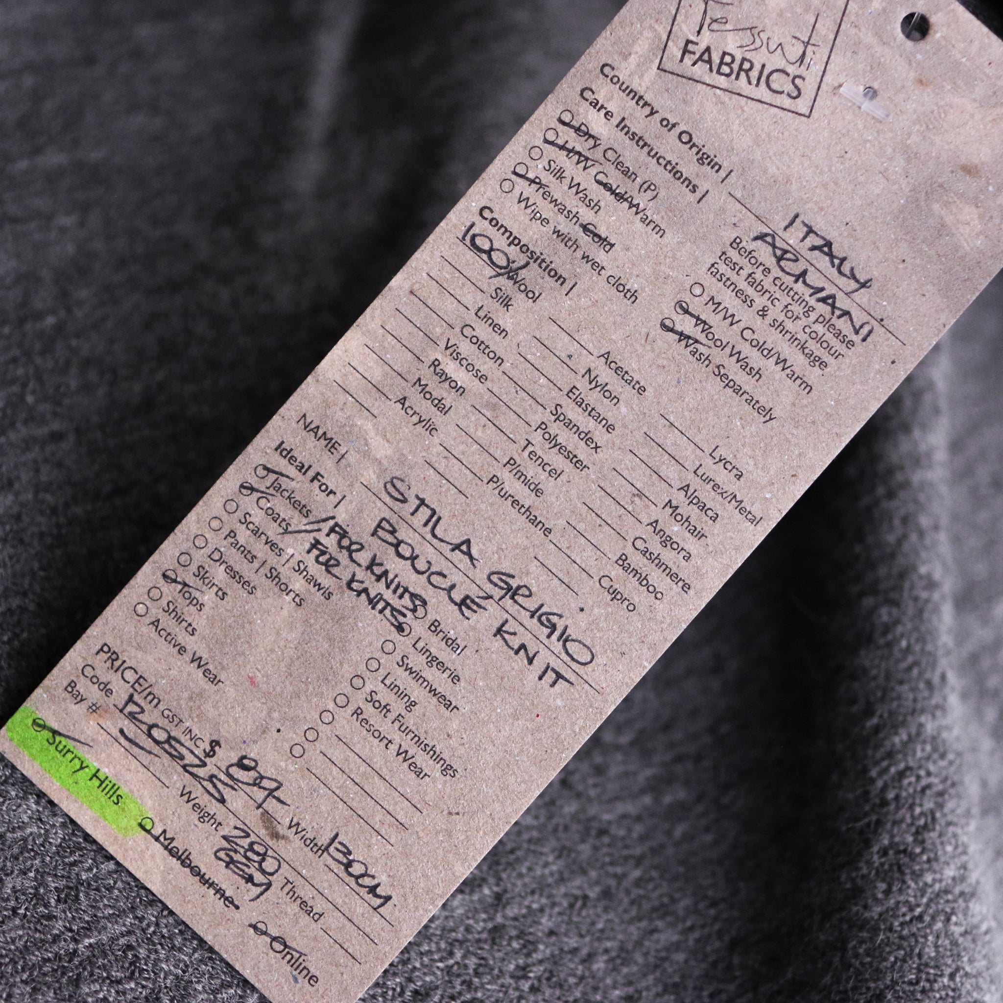 Italian designer charcoal boucle 100% wool knit