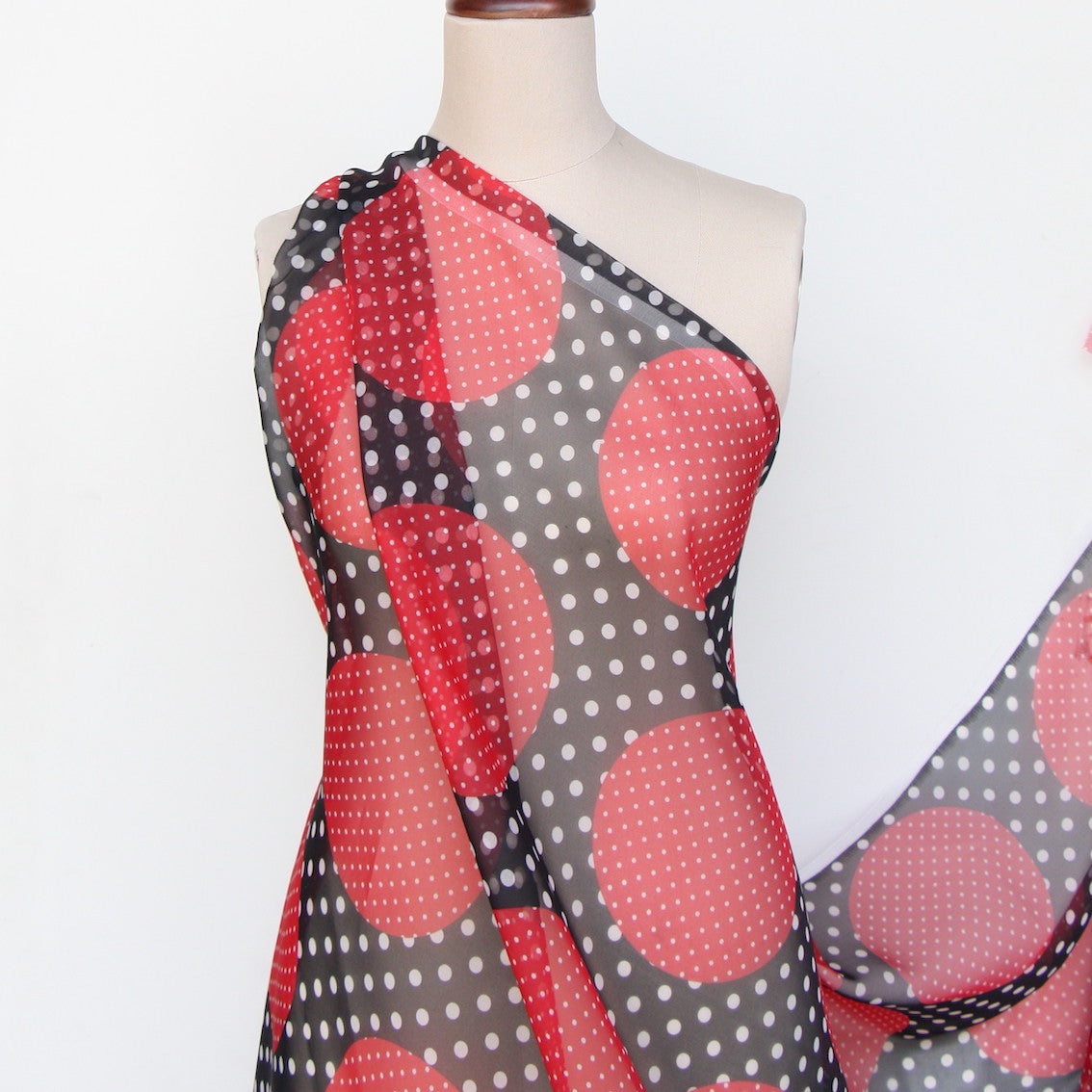 Italian designer Valentino black/off-white/red spot on jumbo spot printed 100% silk organza