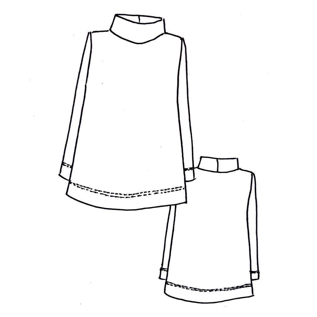 The Hazelwood Top is an A-line stye with a relaxed funnel neck collar, full length set-in sleeves and wide hem and sleeve facings. The pattern includes two lengths - Version A (shorter length) and Version B (longer length). This stylish top is a great autumn/winter wardrobe staple and a quick sewing project.