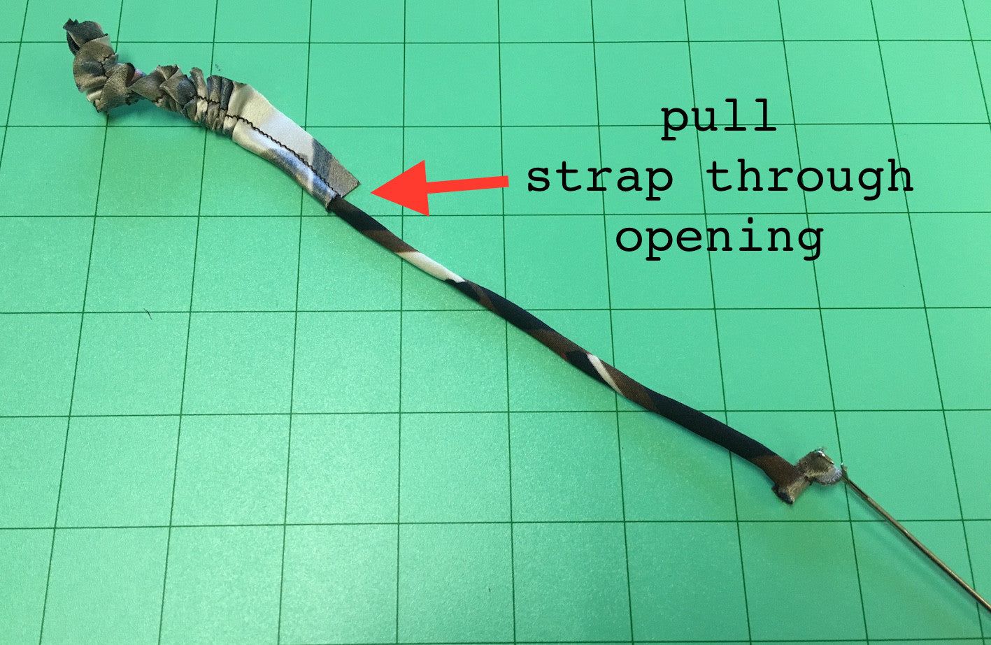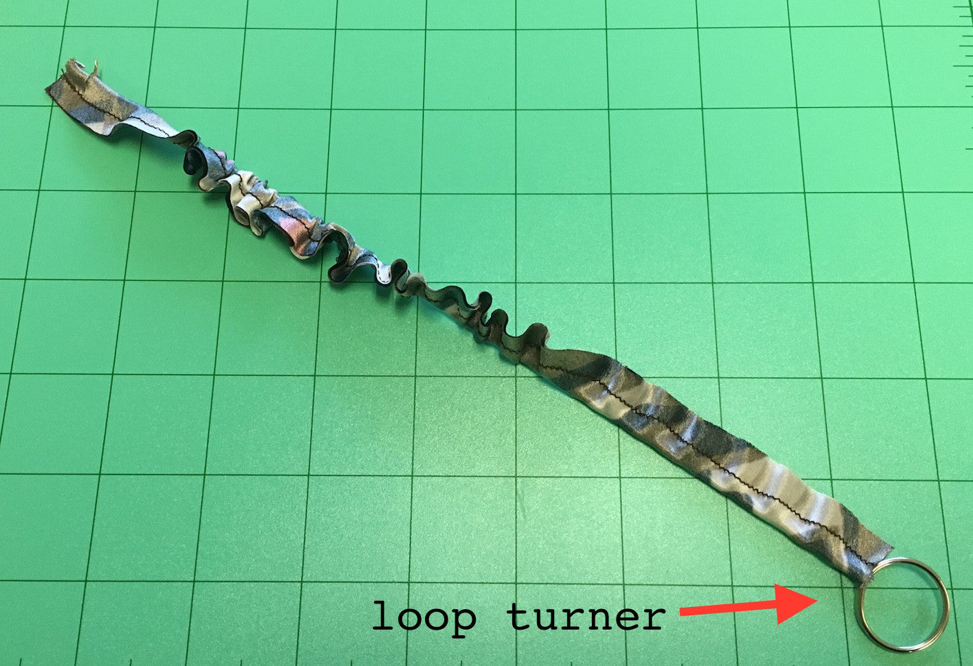 - Latch-hook end catches fabric to pull it through bias tubing