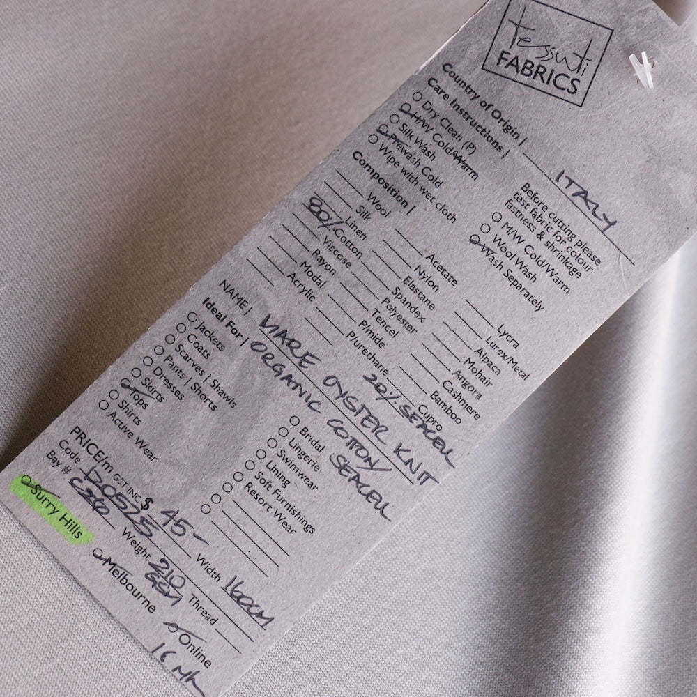 Oyster 80% organic cotton 20% SeaCell knit