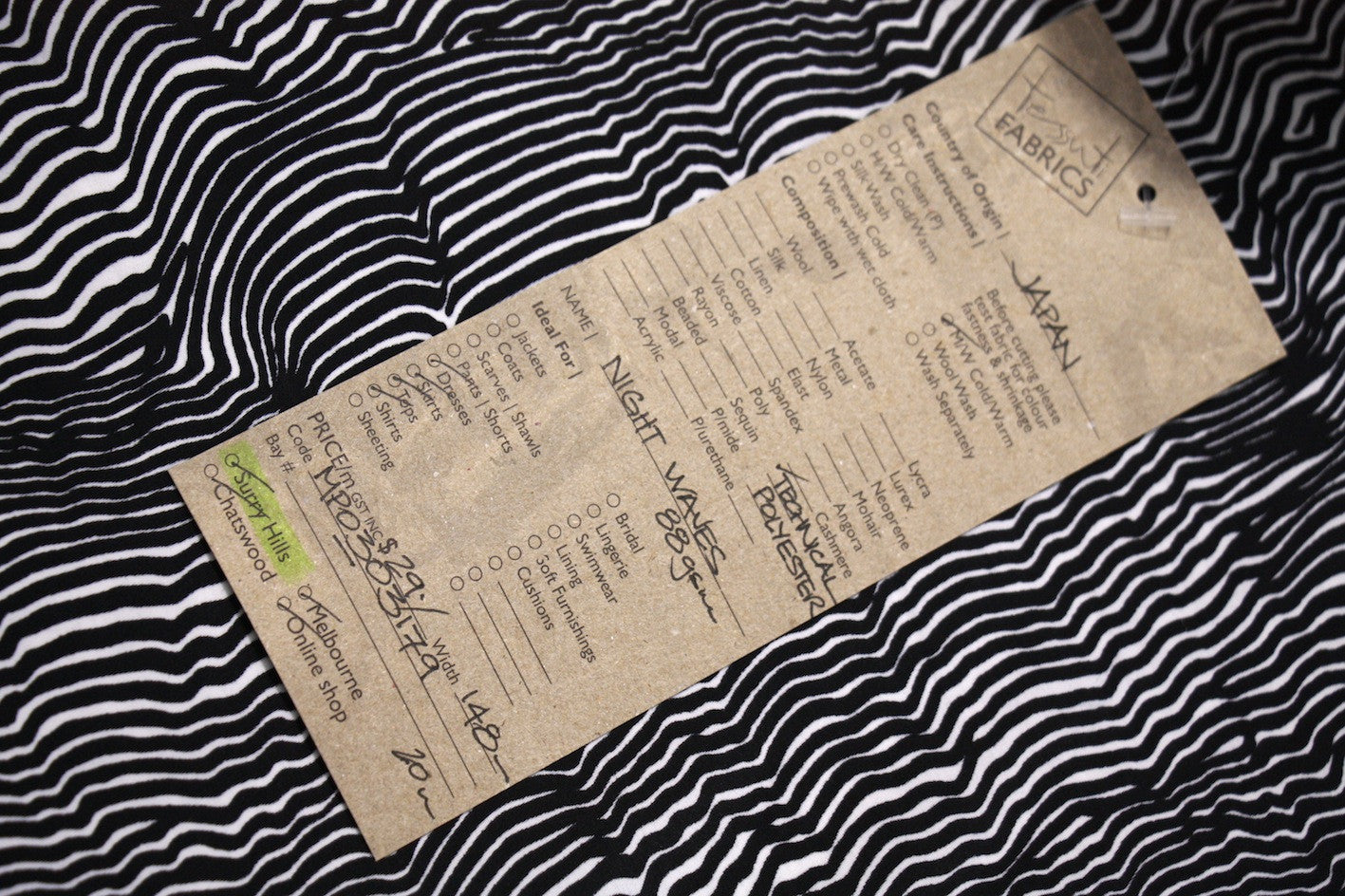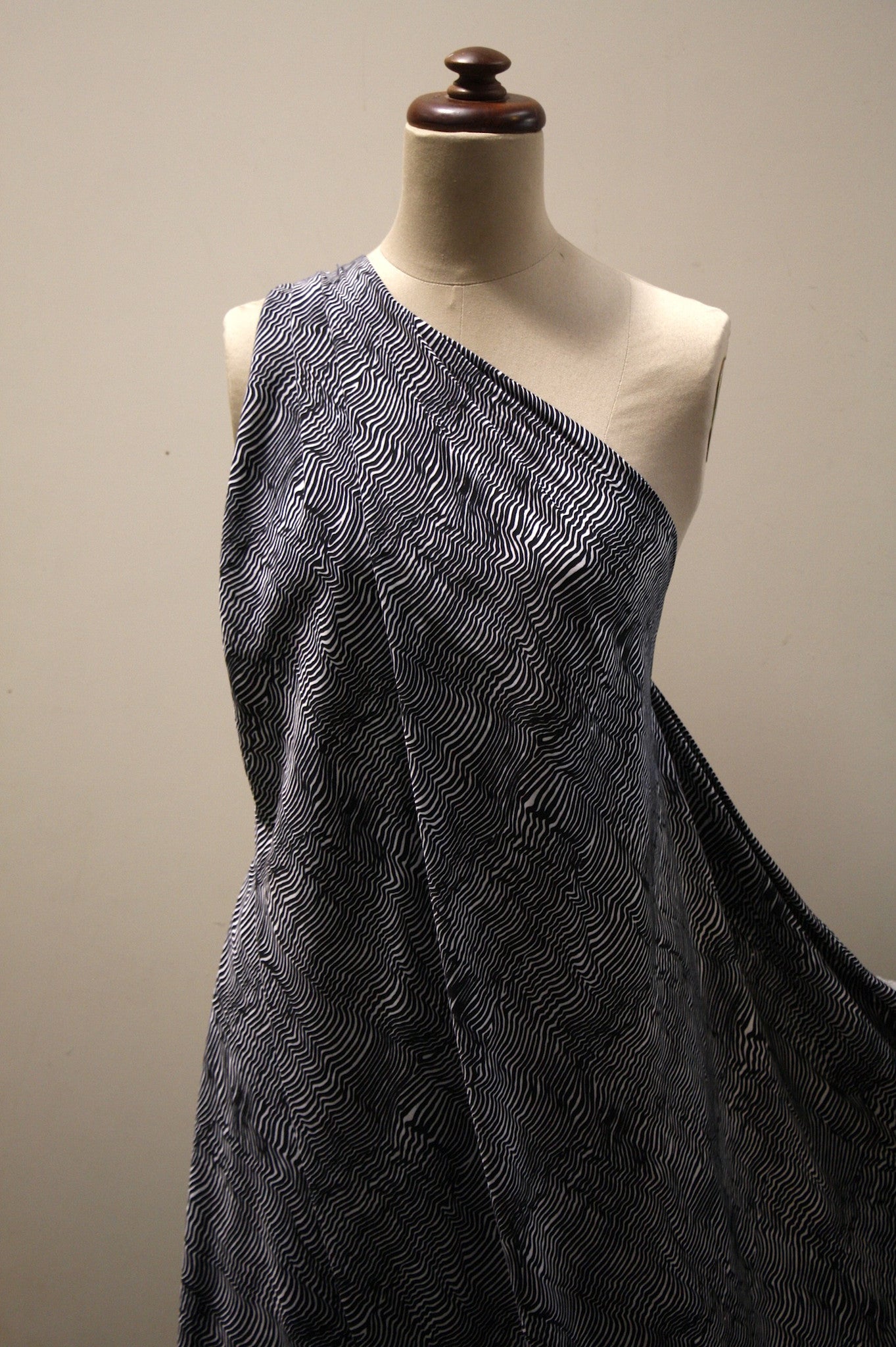 Sand/white printed Japanese technical 100% Polyester. 148cm wide.