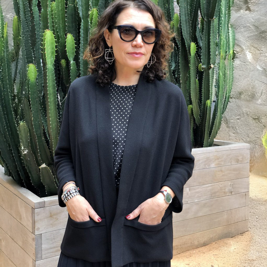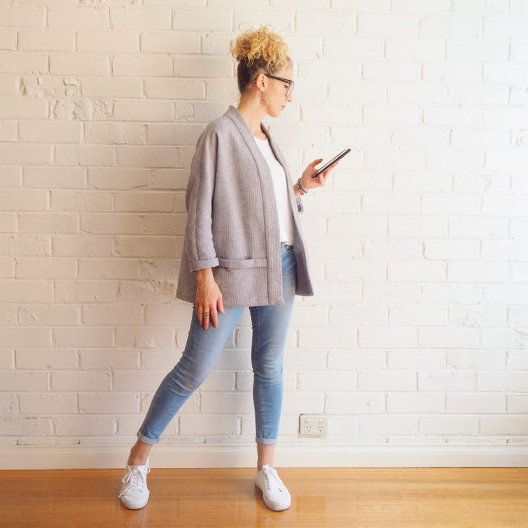 The relaxed Tokyo Jacket features three-quarter length magyar sleeves. For a smart and simple detail, the neckline, cuffs and pockets are trimmed with a band.